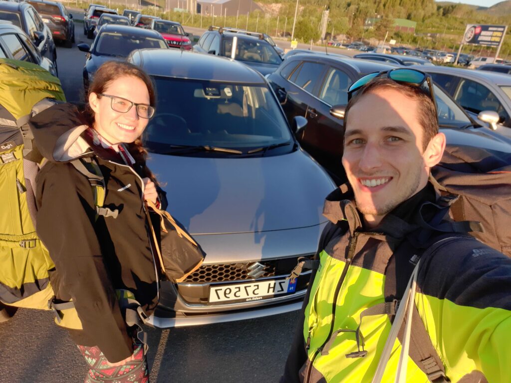 Letiště v Narviku je maličké. Čekání na bagáž jsme vyplnili vyzvednutím kličků od auta. Docela hladký proces u automatu. Auto jsme našli, nakonec máme Suzuki Swift namísto Toyoty Auris, ale zatím jsme spokojení. Vyfotili jsme škrábance do posledního detailu a s autem vyrazili na cestu.