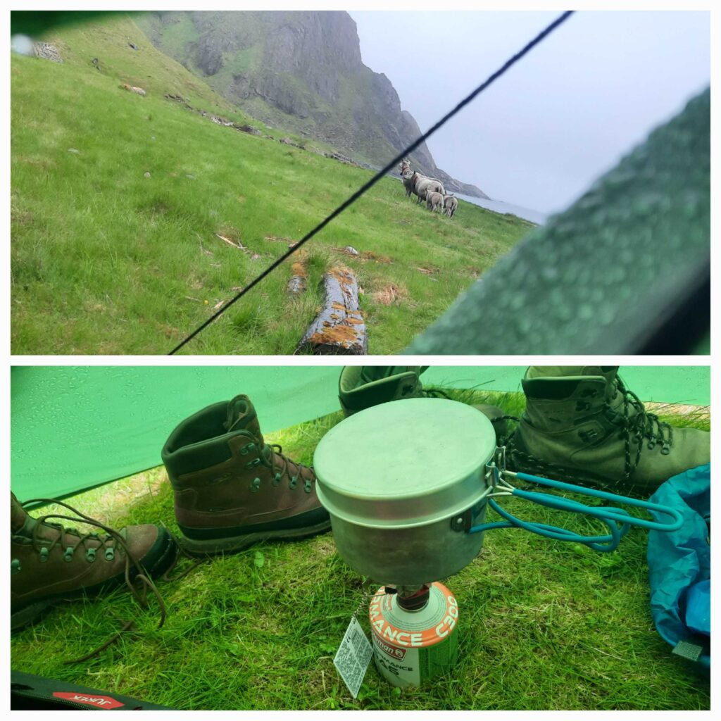 Ráno jsme vstali do nádherného dne. V nových spacácích se nám spalo jako v objetí a bylo nám teplo. Už v noci jsme slyšeli zvonění zvonců na krku ovcí. (Naštěstí až po našem budíku!) se stádečko čtyř prohnalo kolem stanu a pokračovaly dále.