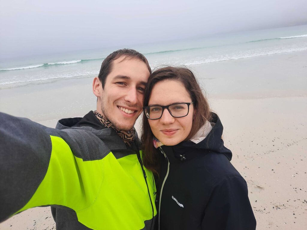 Na „naší“ pláži jsme si vydechli v autě a šli se posilnit horkou čokoládou. Týna na internetu našla varování o silném větru, tak snad se nás to nebude moc týkat, i když občasné poryvy jsou docela silné.