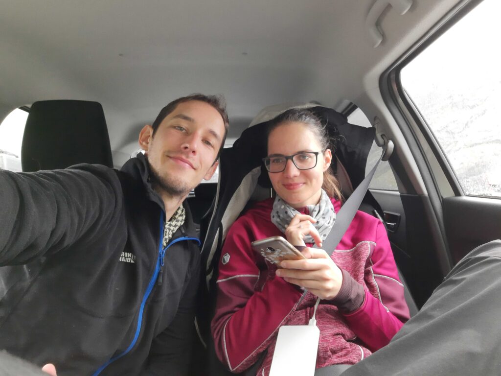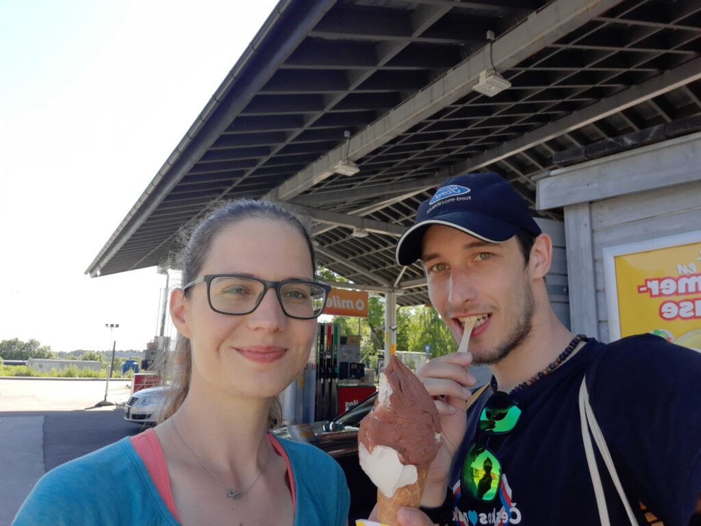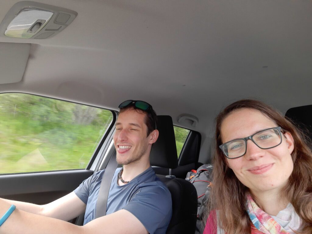 Počasí se začalo zhoršovat, ale předpověď hlásí pouze desetiny milimetru za hodinu, což je ok, nejsme z cukru. Využili jsme navigace v autě (šetříme data) a vyrazili na cestu, bohužel 3 hodiny, ale jinak to nejde. Po kousku cesty kontroluje Týna směr a naštěstí zjišťuje dostatečně brzo, že naše trasa obsahuje trajekt! Tak to ne! Otáčíme se a vyrážíme už potřetí známou cestou (počtvrté tudy už pojedeme domů). Po 2 hodinách cesty dáváme oběd, ale jen v autě, protože opět prší.