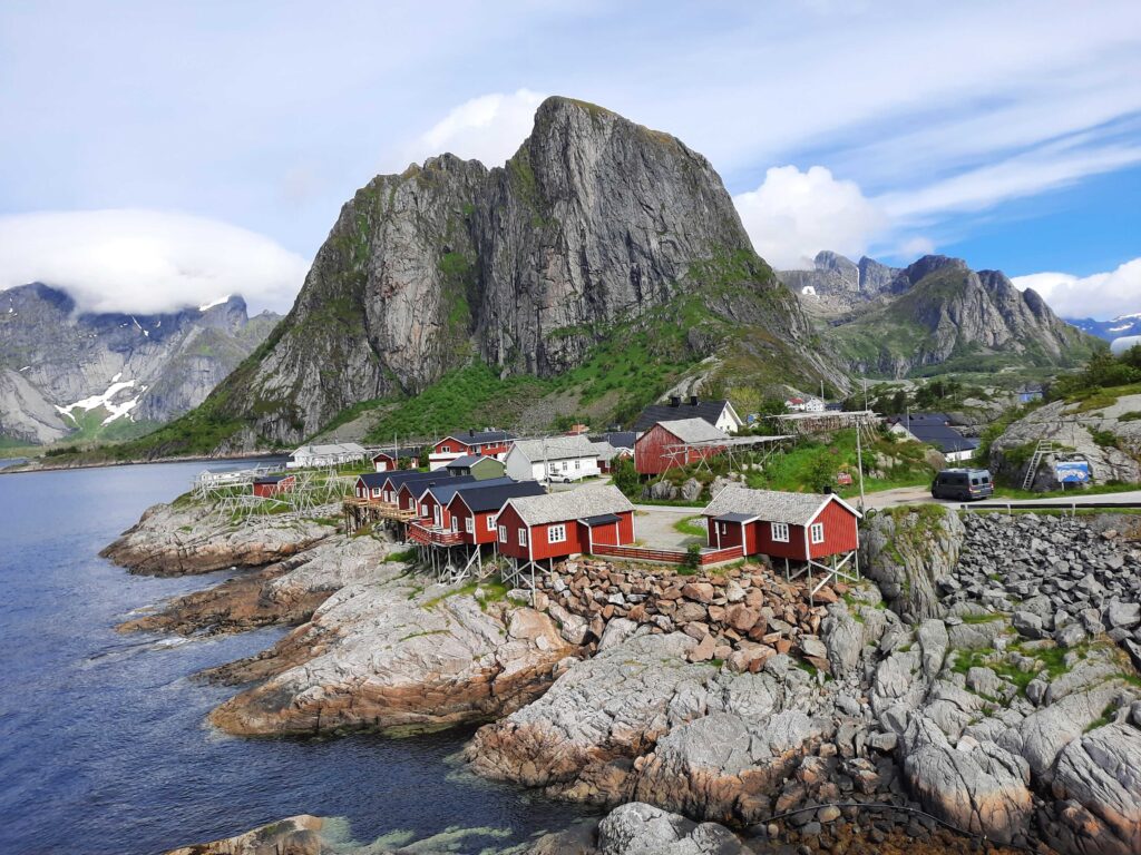 Vyrážíme na cestu, vzdálenosti jsou teď mnohem mnohem menší, takže pouze nějakých 30 minut jízdy. Naší první zastávkou je Nusfjord. (mimochodem na mě poprvé za 3 dny svítí sluníčko, když píšu tento text). Později jsme se dozvěděli, že celý Nusfjord je skanzenem, do kterého se během sezóny platí vstup 100 NOK. My nic neplatíme a celé městečko si prohlížíme.