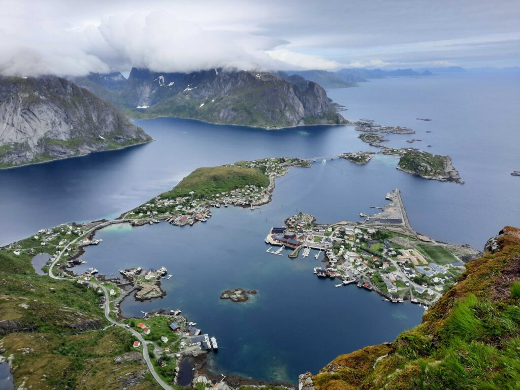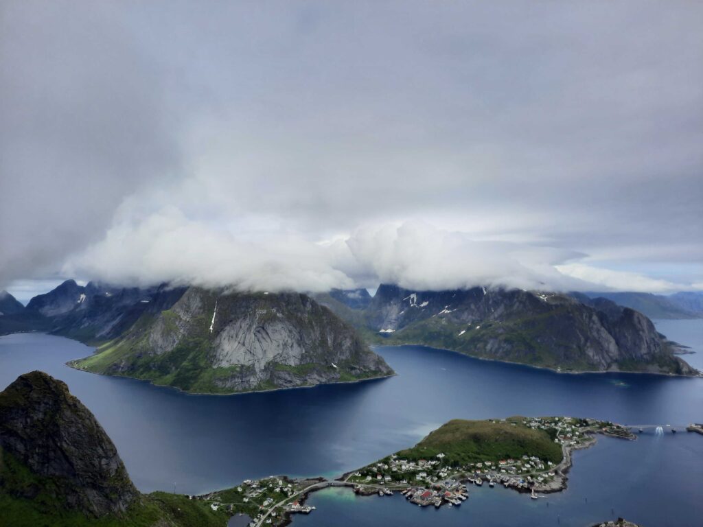 Druhá zastávka je u městečka Reine, nad kterým se tyčí ikonkcký kopec Reinebringen.