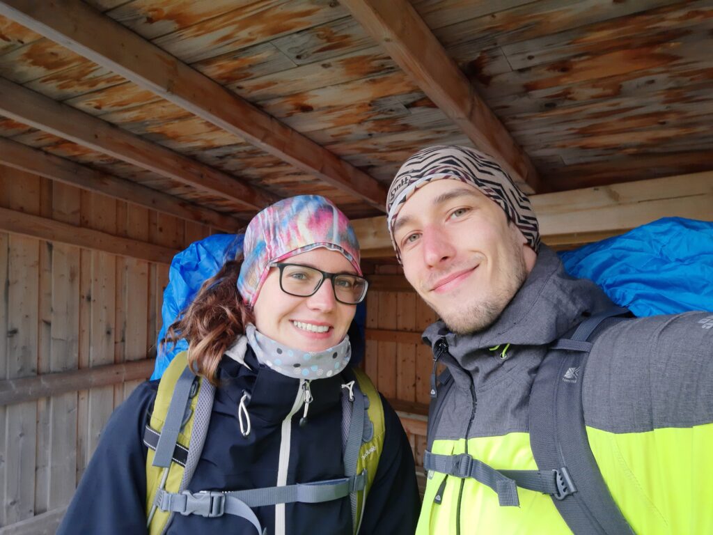 Dnes jsme vstali o něco později, než předchozí dny. Nic nás nežene, takže jsme nechali budík budíkem a čekali, až se probudíme. Už ráno nás maličko popoháněla zima, celkově je sluníčko pod velkými mraky a docela fouká vítr. V to, že by mraky rozfoukal ani nedoufáme, protože víme, že večer už bude pršet.
