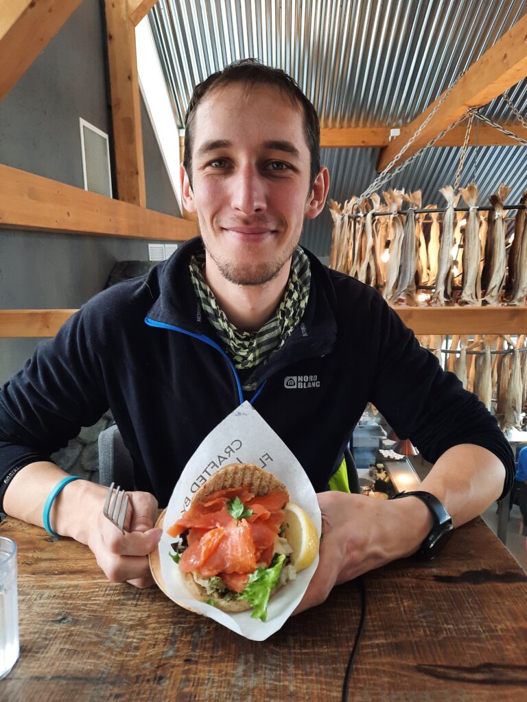 Já musel napravit chybu, kterou jsem včera spáchal v Anita’s Sjømat. Koupili jsme si totiž burger s tradiční plackou, ale až potom jsem zjistil, že mají i uzeného lososa. A toho jsme si dali dneska. Výborný a rozhodně lepší než ten včerejší, i když už ten byl skvělý.