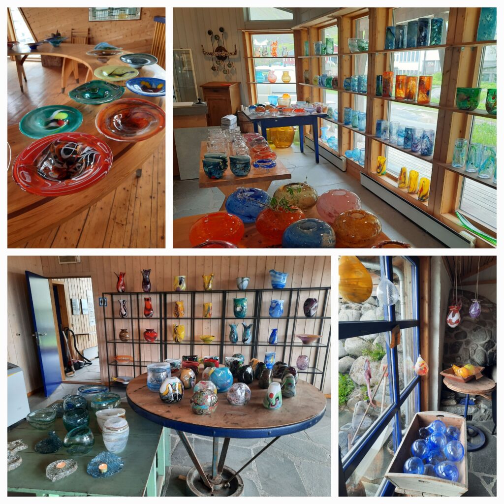 Ze Sund jsme pokračovali do Leknes, ale vzhledem k délce cesty jsme měli spoustu času na přemýšlení a zařadili jsme ještě jednu mezizastávku do vesnice Vikten, kde se již od poloviny dvacátého století nachází první (umělecký) sklář na Lofotech. Čekali jsme klasickou ukázku umění s možností nákupu, co jsme ale vůbec nečekali byla otevřená dílna, kde jsme mohli pozorovat skláře přímo u práce. Pece v okolí měly aspoň 1 000°C, a tak bylo opravdu hezké teplo.