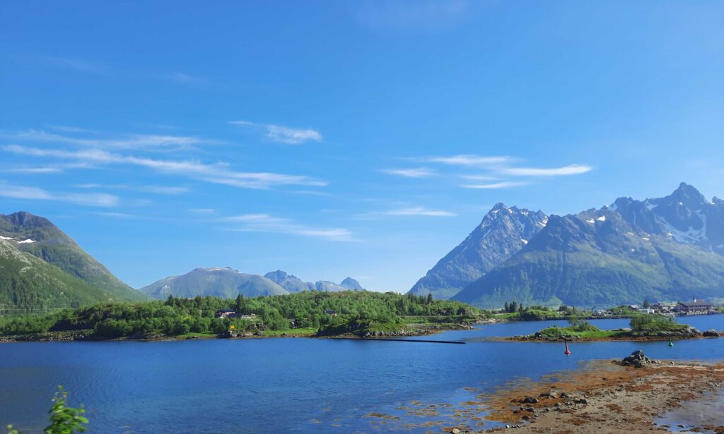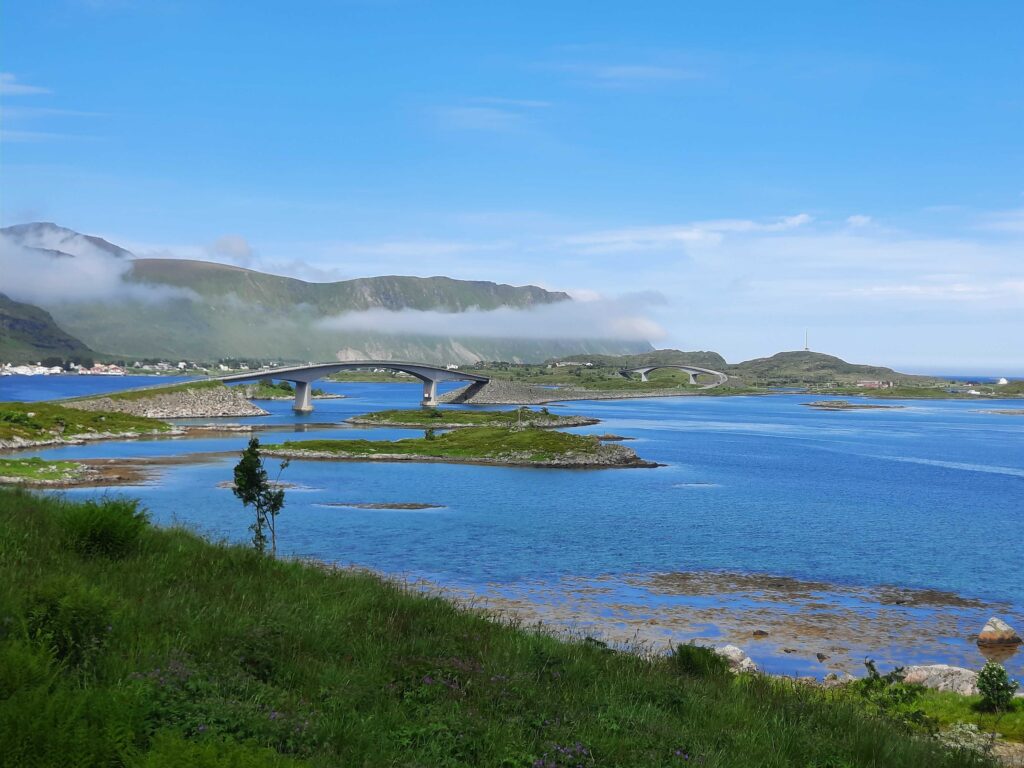 Z pláže jsme vyrazili po desáté hodině a zamířili do asi největšího města na jihu – Leknes (3,5 tis. obyvatel). Zde jsme doplnili zásoby v mém nejoblíbenějším norském obchodě, v Rema 1000. Prošli jsme všechny uličky a koukali na nejlevnější ceny. Nákup nás i tak vyšel na 400 NOK. Máme ale zásoby na několik dní a hlavně máme mraženého lososa! Příprava v ešusu bude sice premiéra, ale olej ze sušených rajčat to jistí.