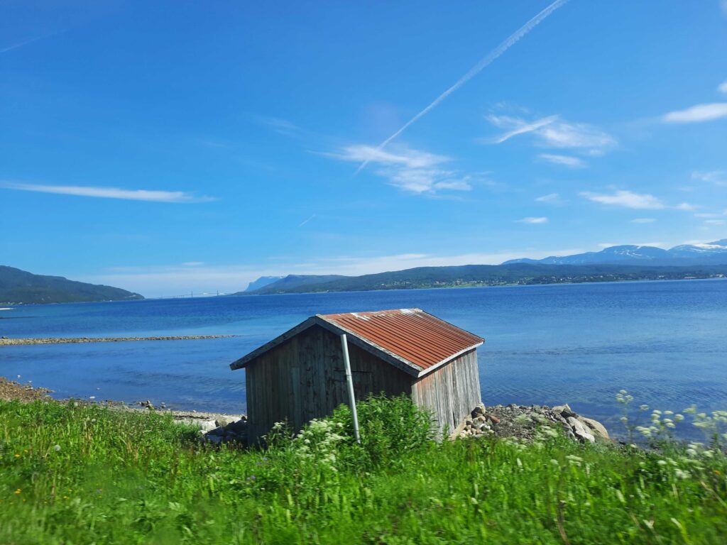 Navigace v autě nás nakonec vypekla ještě jednou, když nás místo hlavní spojovací cestou poslala přes téměř polňačku, ale výmoly jsme šnečím tempem zdolali. Konečně jsme tedy byli v našem prvním cíli! Městečko Stave je nejsevernějším bodem naší výpravy s hlavním cílem – pláží Høyvika. Naše souřadnice je 69°14’7.436″N.