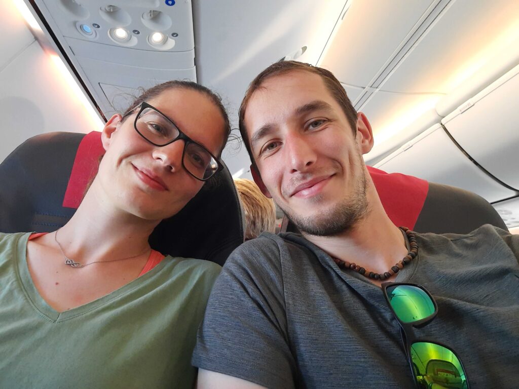 15:20 nasedáme do letadla. Wizzair je kámoš a za výběr sedaček se připlácí, což jsme nechtěli a nedělali ani u Norwegian (ti nás ale dali vedle sebe). Takže máme sedět v řadě 13 a 37. Naštěstí se se mnou slečna mění a sedíme vzadu spolu. Uf.