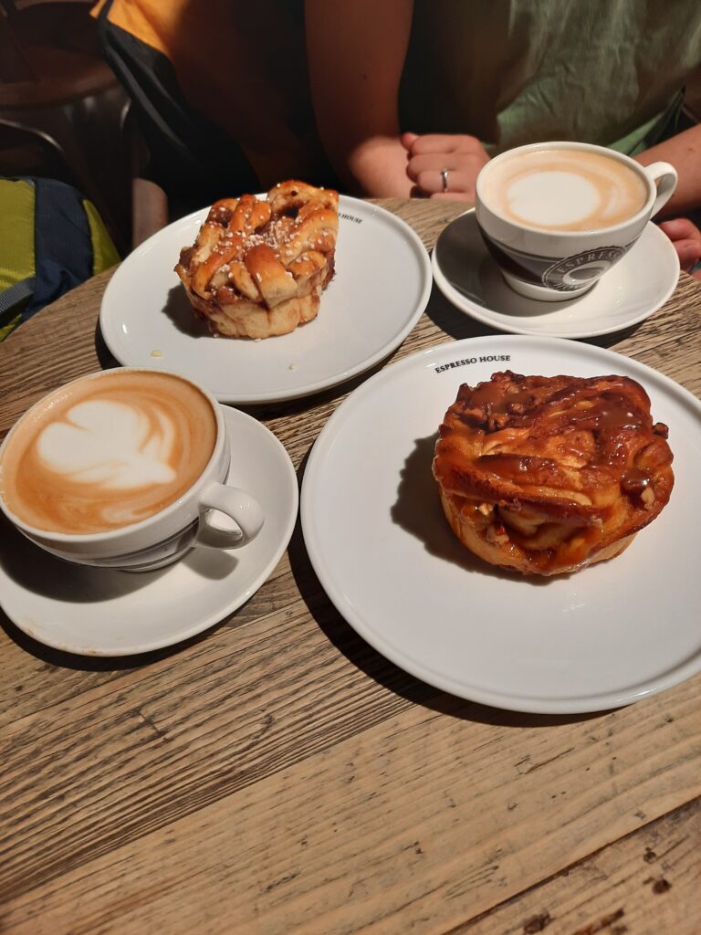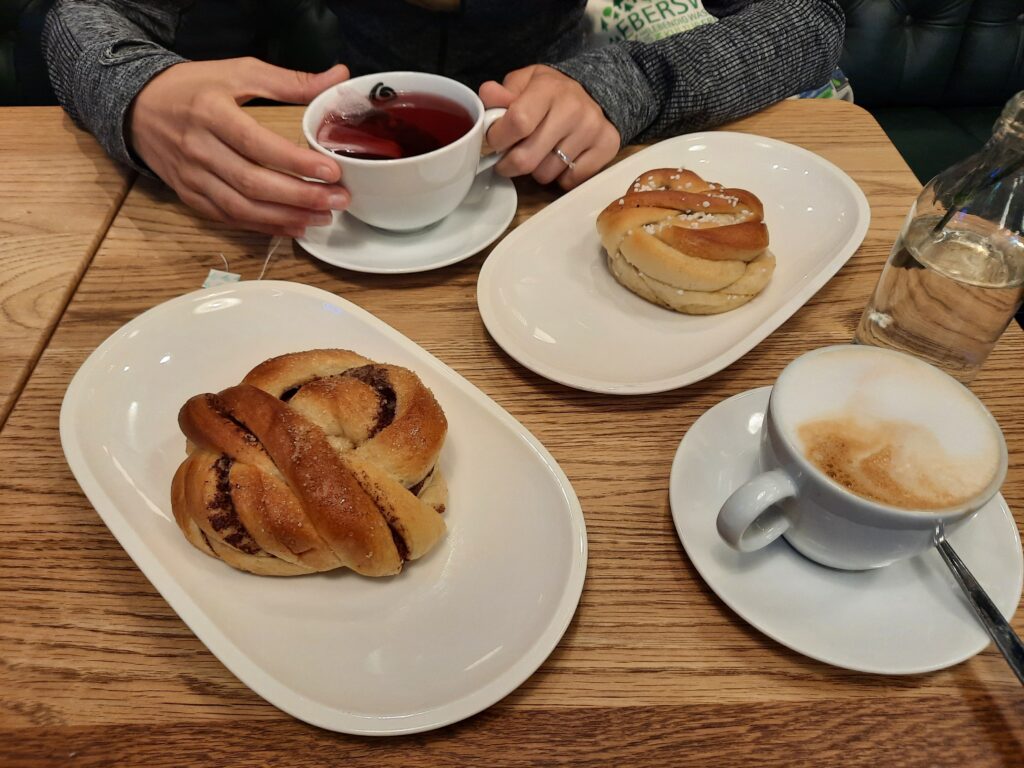11:10 jsme na hlaváku a dáváme si poslední kanelbolle a k tomu další variantu s pekanovými ořechy a karamelovým přelivem (tomu jsem nemohl odolat) a dvě cappuccina. Sedíme a odpočíváme, vlak na letiště nám jede za více než hodinu.