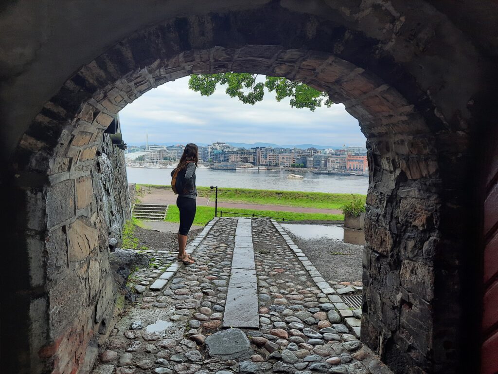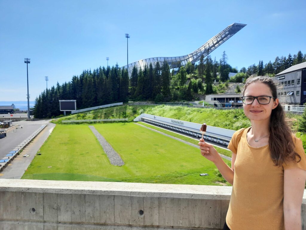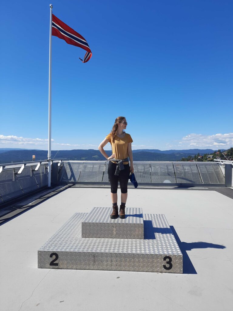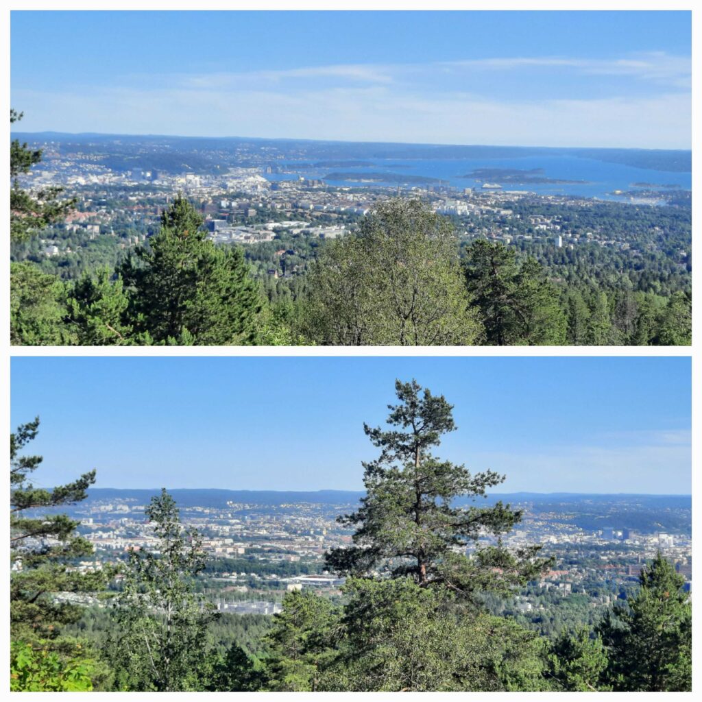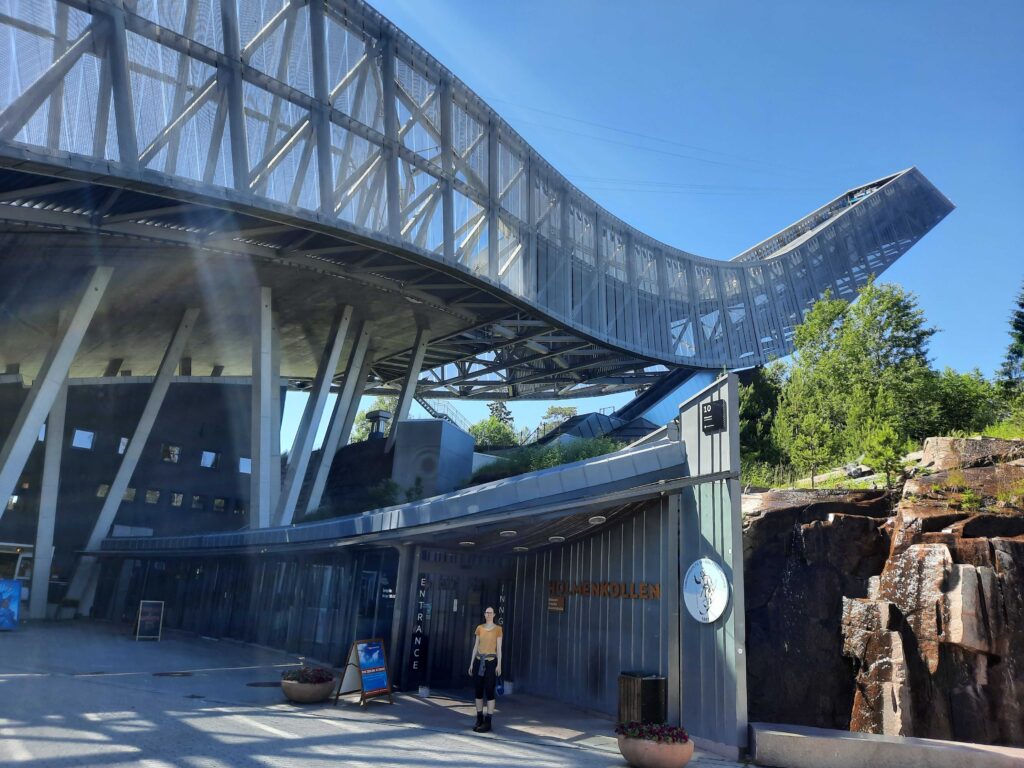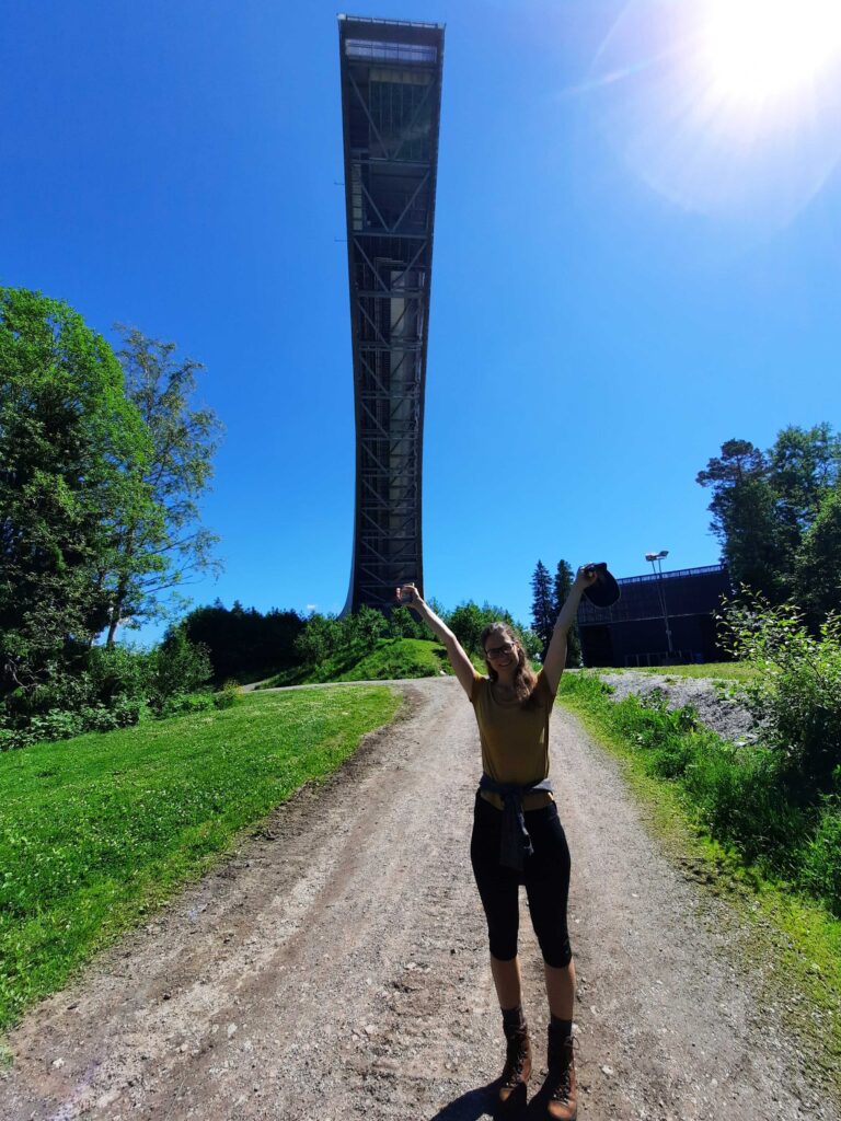 Po sváče jsme pokračovali. K Holmenkollen sice jede nějaké MHD, které by nás přiblížilo, ale snažíme se šetřit (aby bylo na párek 🙂 ). Jedna jízda pro dva je asi 180 Kč (to je 2x 2 párky) . Jdeme necelou hodinu, protože je velké parno a často zastavujeme na pití vody. Zároveň na mě padla dost únava, takže se táhnu jako hlemýžď. Výsledek je ale dost okouzlující.