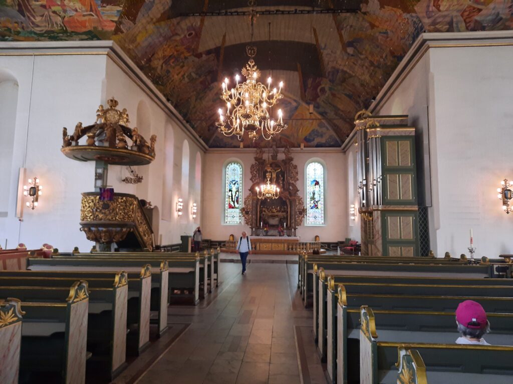 Druhým cílem dne je Buksnes kirke tedy kostel v Buksnes. Co se týče historie, není nijak výjimečný, ale za to je moc krásný v typickém norském stylu. Tentokrát jsme měli štěstí a chvíli před námi dorazil zájezd (německý), který měl i komentovanou prohlídku. Na závěr jsme slyšeli zřejmě typický norský kostelní zpěv.