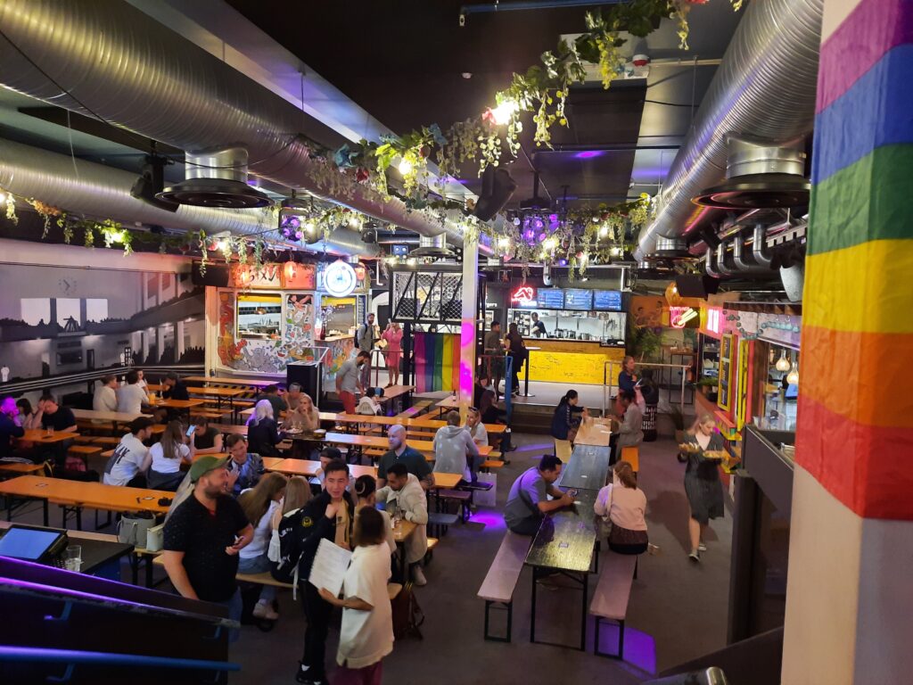 20:50 oba si pochutnáváme na velkém sendviči ze Subway. Zasloužíme si ho. Kolem nás je miliadra (skoro polonahých) a barevných lidí. V okolí je festival beats4love. Hodně techno hudba(?). Tak aspoň se v tom davu ztratíme.