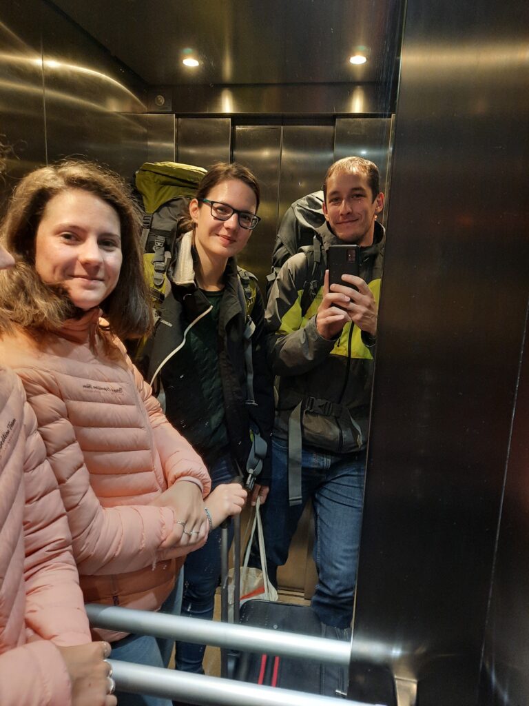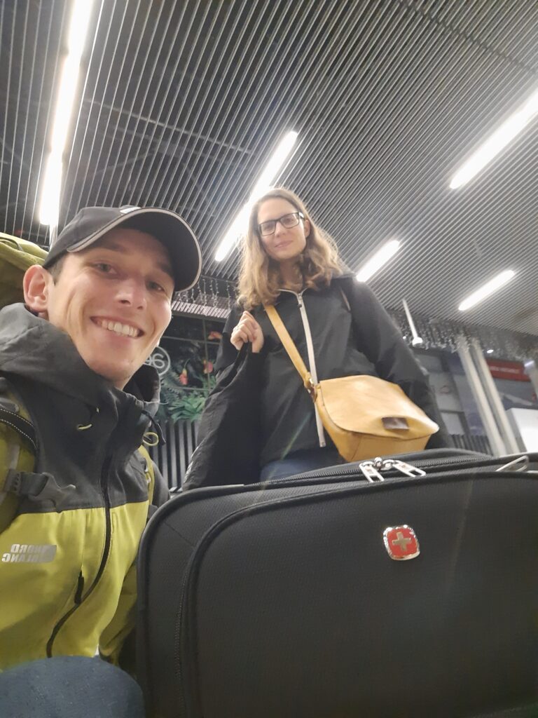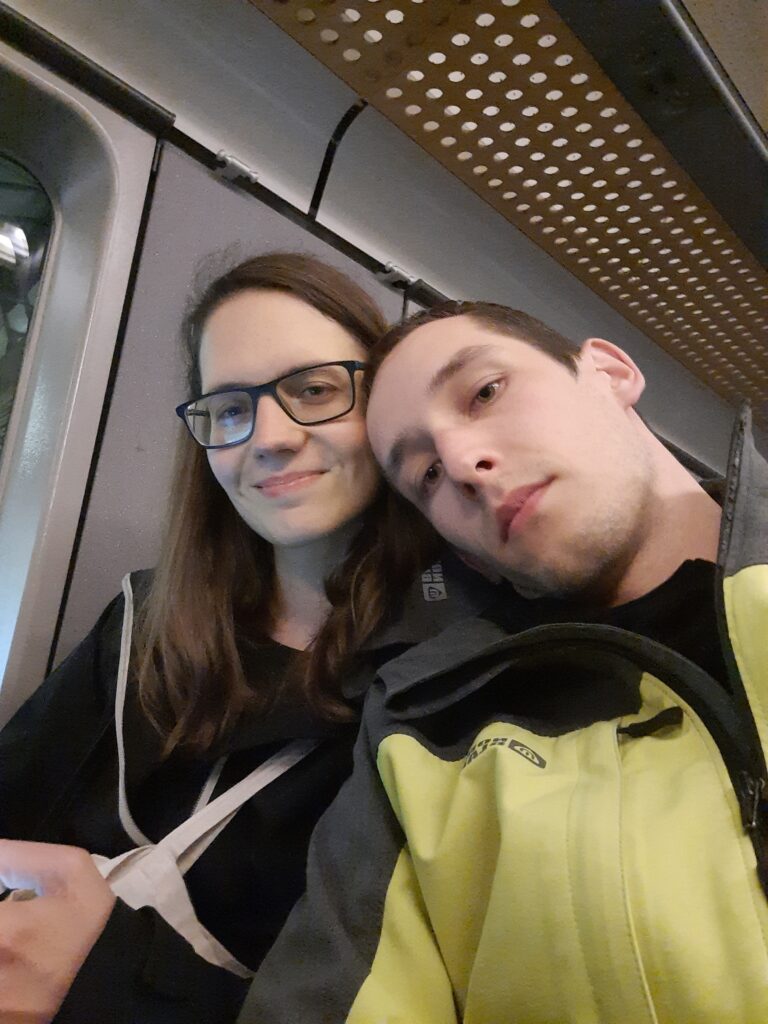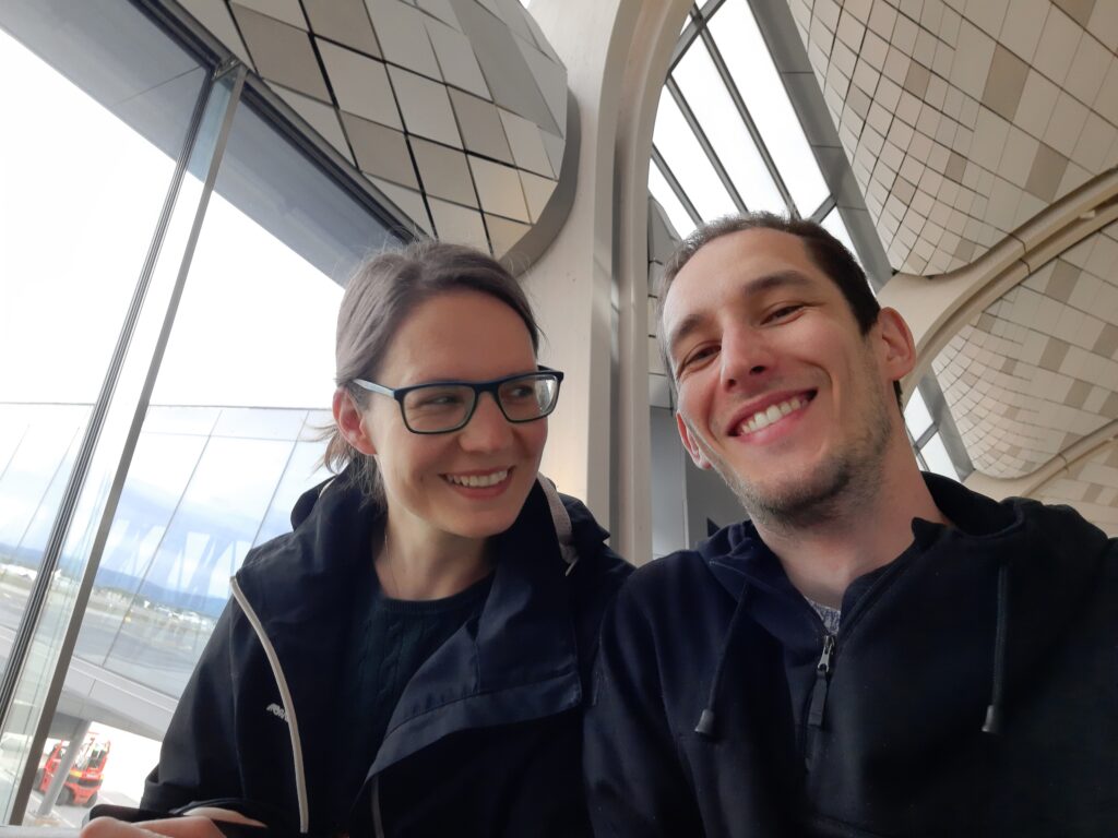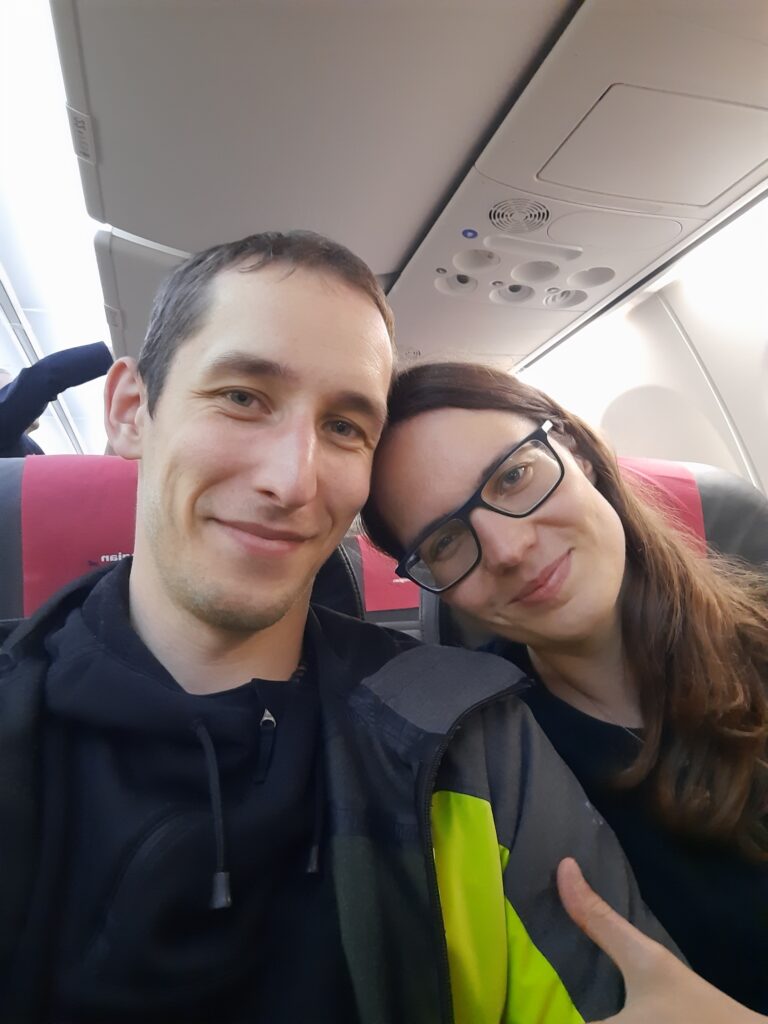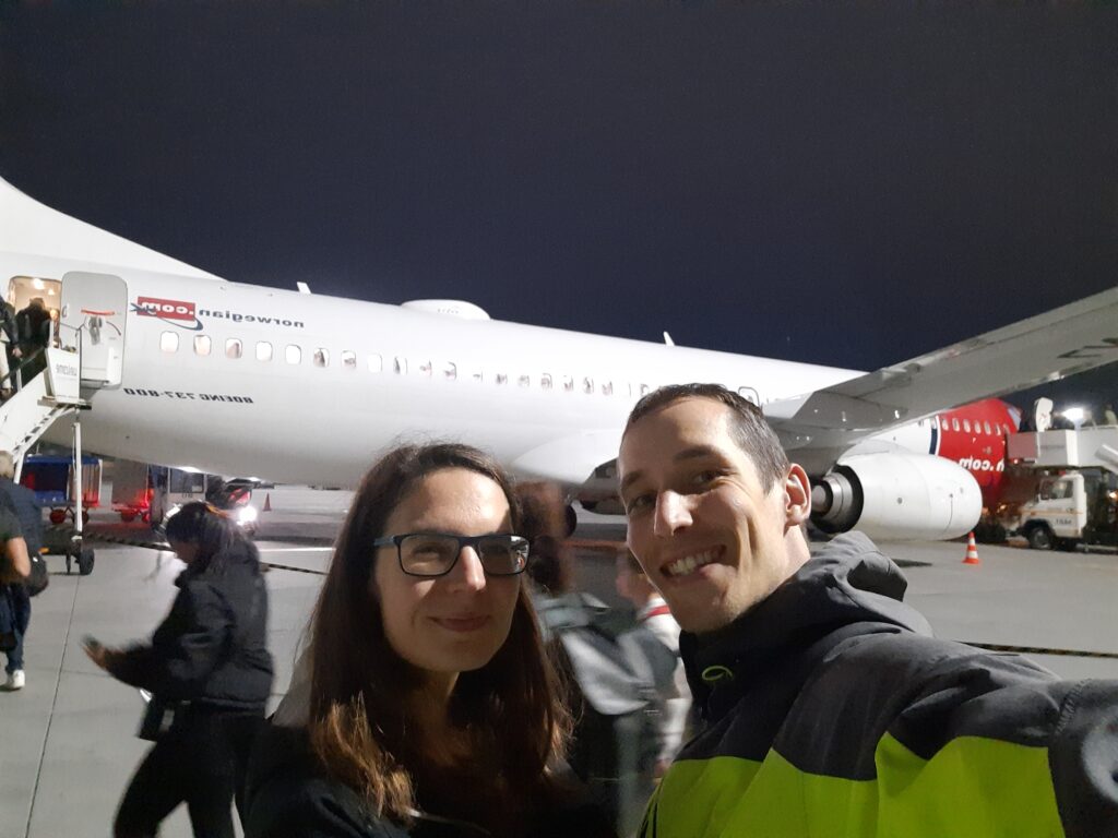 Máďa nám z Norska podává rešerši, že poslední dva dny byl let vždy o 20 min rychlejší, takže možná stihneme dřívější vlak. To se neděje, protože dvě cestující mají nějaký problém a zdržují let. Co se dělo, nevíme.