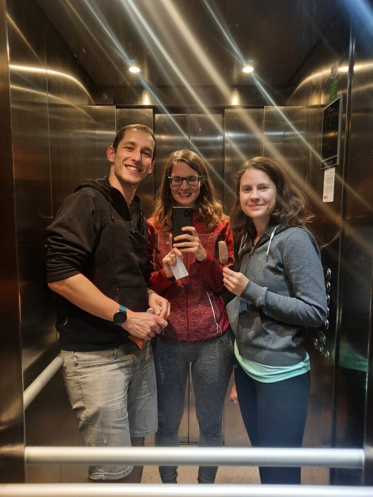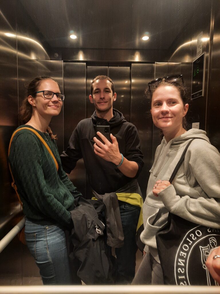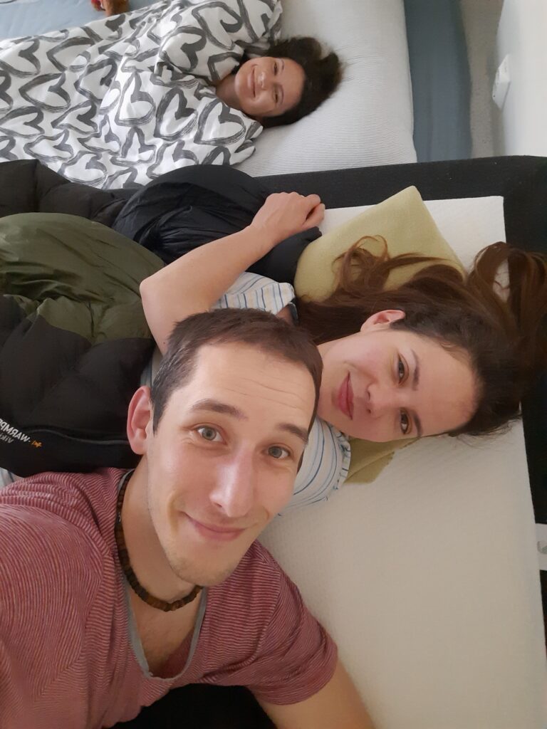 Máďa na nás čeká na nádraží a s Týnou mají krásné filmové objetí s rozběhem (mám pocit, že byly obě trochu naměkko). Madla nás ihned krmí čokoládovou bolle. Jedeme metrem na koleje a při výstupu potkáváme první kámošku, Sabrinu. Ve 2 ráno jsme tu. Rychlá sprcha a spát. S Týnou se budíme v 7, ale ještě jsme se donutili spát (válet se) do 10.