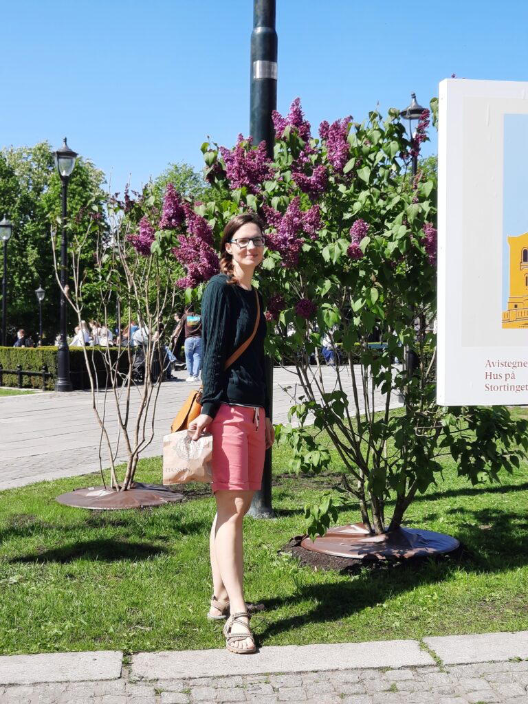 Po cestě potkáváme několik Norů v tradičních krojích nebo v oblecích. Na výstupní zastávce u Národního divadla vidíme další. Divíme se, národní den tu byl 17. května (a Noři ho berou opravdu vážně), asi nějaká slavnost. S Týnou se snažíme zorientovat. Už jsme tu byli před necelým rokem a tak nám chvíli trvá určit alespoň část města. Pokračujeme k radnici, do které jsme se při naší návštěvě nestihli podívat, protože pár dnů předtím se tu odehrál xenofóbní útok během Pride týdne. Radnice tehdy byla zavřená. Míříme k ní a zjišťujeme, že proud Norů v krojích a krásných šatech nebo oblecích směřují právě tam. Co se dělo, jsme zatím nezjistili, ale vzhledem k počtu to asi byla významná akce. Takže radnici i teď vynecháváme.