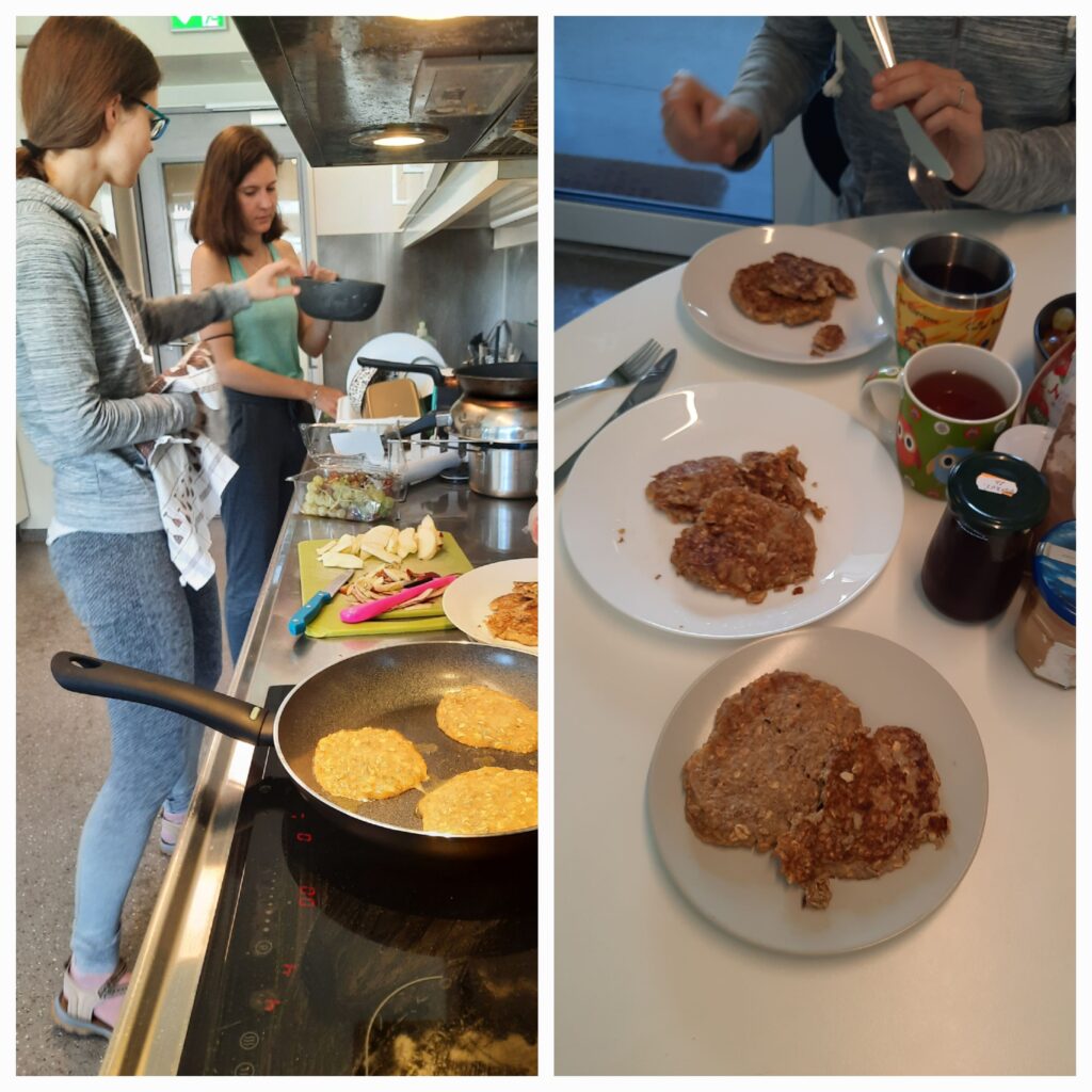 Ráno nám zazvonil budík 8:10, a pak znovu 8:20, 8:30, až jsem ho 8:40 vypnul. Vstali jsme ale brzo, už o půl 10 jsme byli připraveni vyrazit do kuchyně. Dneska byla snídaně spíše naslano – chleby s máslem, sýrem a šunkou, Máďa měla vanilkový jogurt. K tomu jsme ještě připravili chleby na odpolední piknik. Na pokoji jsme se dochystali a po čtvrt na 11 vyrazili do parna.