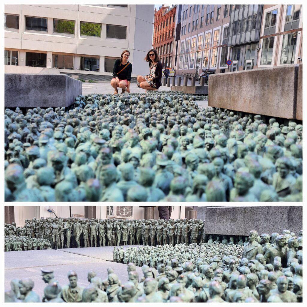 Pokračujeme dále uličkami, užíváme si krásnou norskou architekturu a míříme k „vojáčkům“, Týna s Máďou ví, o co jde, ale já ne, a tak jsem velice překvapen, když na místo přicházíme. Musím říct, že to jednak muselo dát strašně moc práce, protože žádné dvě postavičky nevypadají stejně, a jednak mě to prostě rozesmálo. Milion malých panáčků namísto kachlí. Opět si vzpomínám, jak otevřený prostor je Oslo pro umělce.
