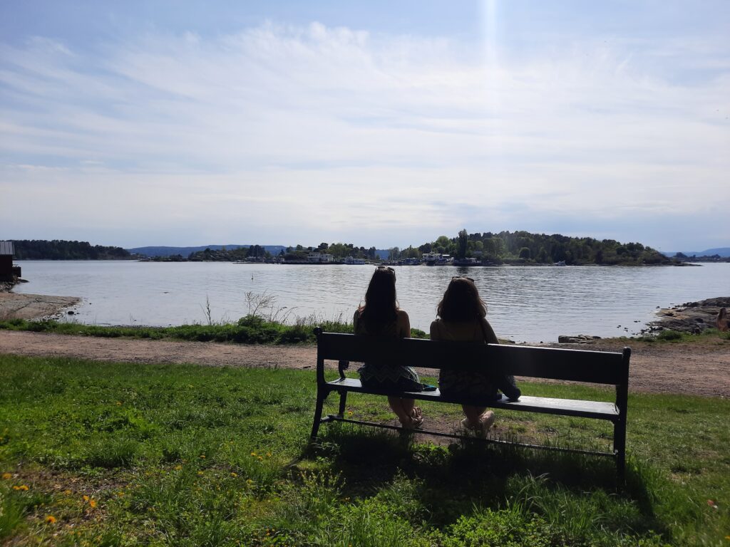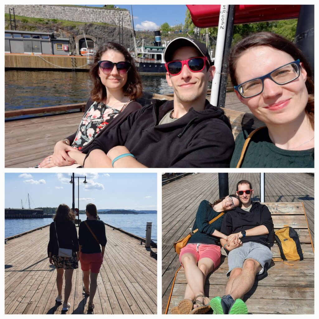 Z místa jsme vyrazili na kafe a první Kardamommebolle. Je potřeba si trochu zlepšit náladu. S Madlou si dáváme cappuccino, Týna ještě dneska pije heřmánkový čaj. Sedáme si do parku na lavičku a sluníčko (tedy konkrétně vitamín D – jak nám vysvětlil Paul u večeře…) nasáváme plnými doušky. Je nám dost teplo, ale nevadí nám to. Přijde mi legrační, že celou dobu, co jsem se do Osla těšil, tak jsem si jej představoval jako Lisabon. Ten také zanechal svým sluníčkem v březnu takovou vzpomínku. Z parku se proplétáme uličkami a pomalu přicházíme k Akershus (bývalá vojenská pevnost) a přicházíme k pobřeží. Sedáme si na molo a zase nasáváme sluníčko. Je to druhá přestávka za asi 10 minut, ale nějak nám to nepřišlo.