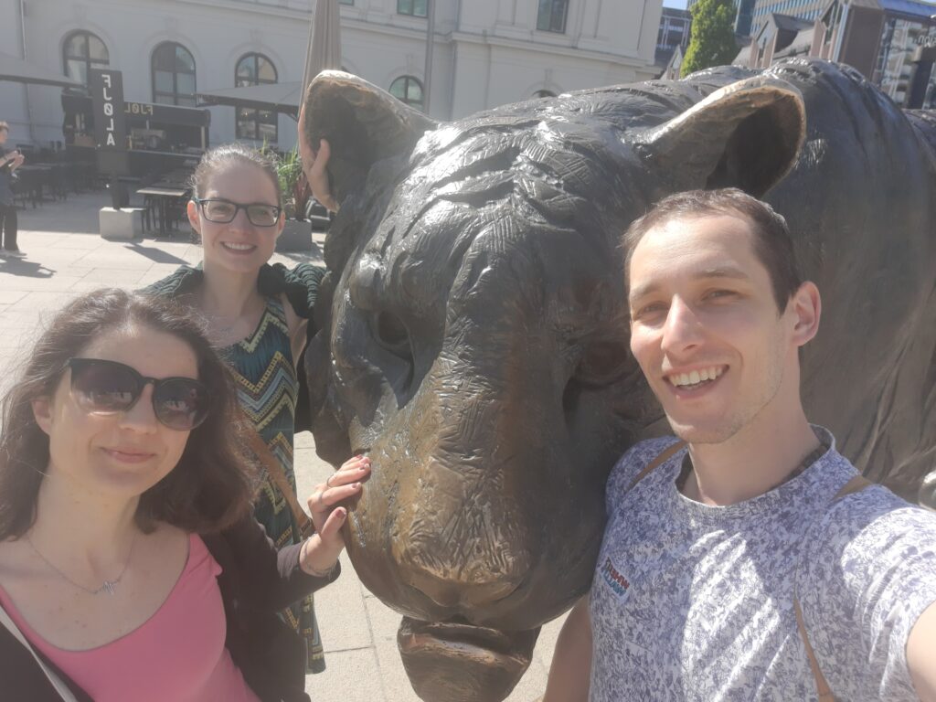 Pak jsme se šli podívat na knihovnu. Na tu vzpomíná i Týna, protože ve Finsku se učila zásadně v knihovnách. A pak jsme naopak my Mádě ukázali, kde jsme se byli podívat loni. Budova, o které jsme si mysleli, že bude ta, kde se Máďa bude učit, byla jen označená jako hlavní budova fakulty. Tam jsme taky pořídili fotku jak z reklamy.