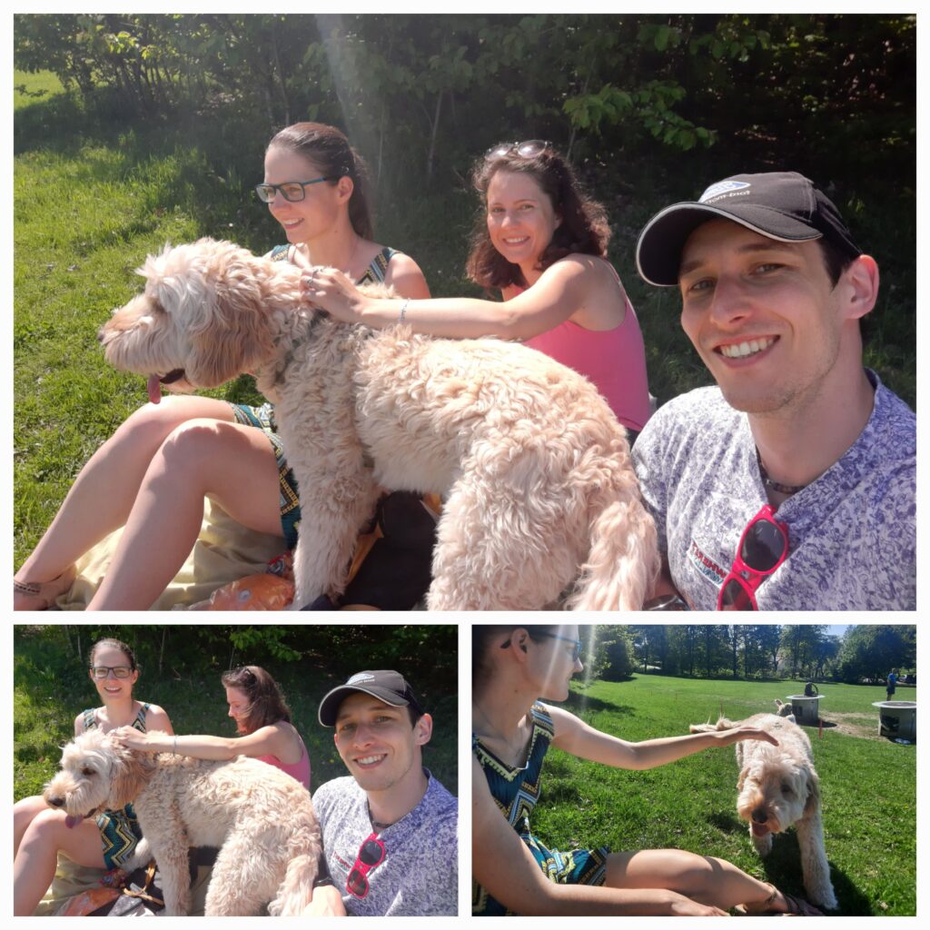 Park jsme si prošli celý a myslím, že nic lepšího už nás v celém Oslu nepotká. V rámci našeho plánovaného pikniku jsme si našli vhodný plácek. Vhodný byl až moc. Během asi 20 minut se tady objevilo tak 10 psů. Různých ras, velikostí, štěkavostí a mazlivosti. Naprosto nejlepší byl tenhle kudrnáč, který do nás doslova naboural a prostě chtěl hladit. Dělal to tak se všema lidma, co tam byli. Jídlo jsme ale radši nechali schované. Psů se nasbíralo fakt hodně a my trávili půl hodiny koukáním na ně. Jsme úplně překvapení, že jsou tak vychovaní a hraví.