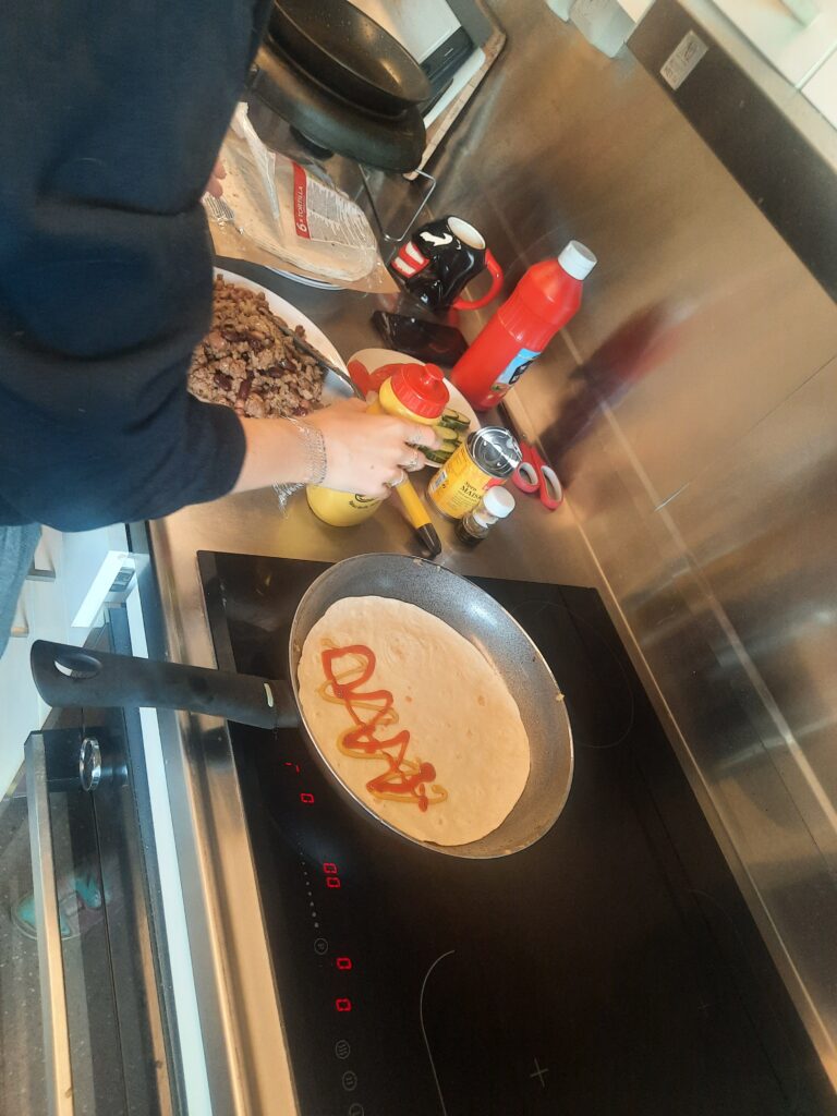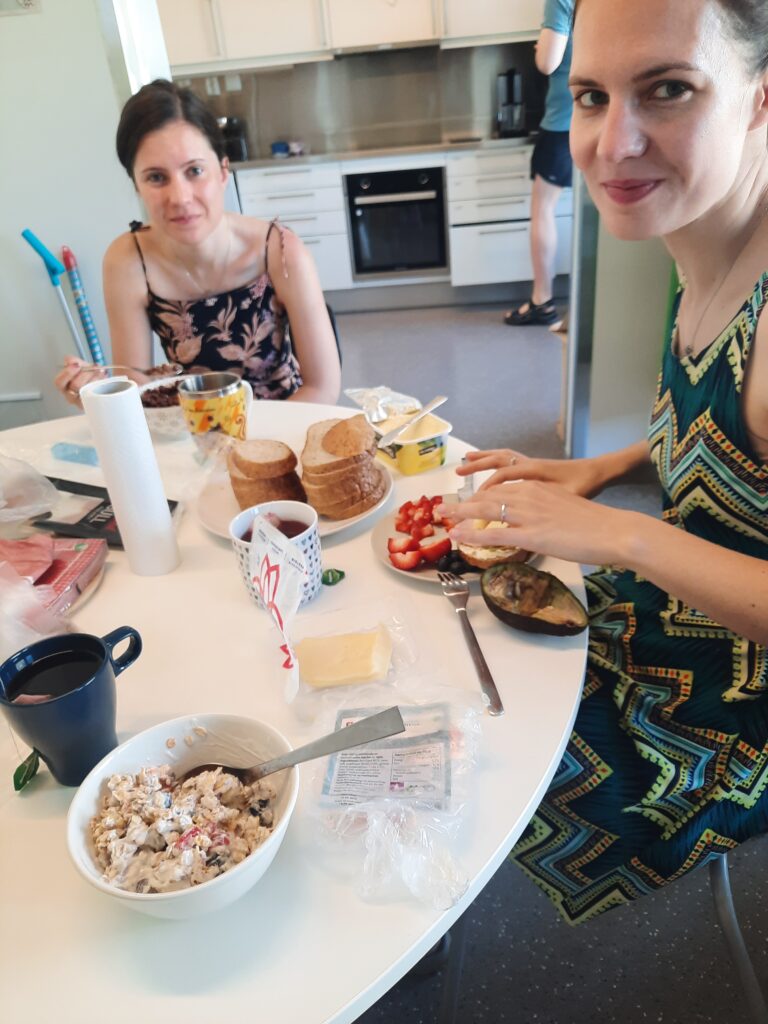 Dnes ráno se nám vstávání konečně povedlo. Snížili jsme ambice a vstali až o půl 9. Na snídani jsme tak byli opravdu brzo. Dneska Máďa a já jogurt, Týna chleba se šunkou. Ještě jsme nachystali i chleby na odpoledne.