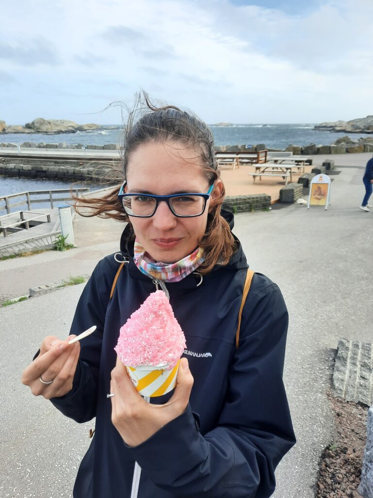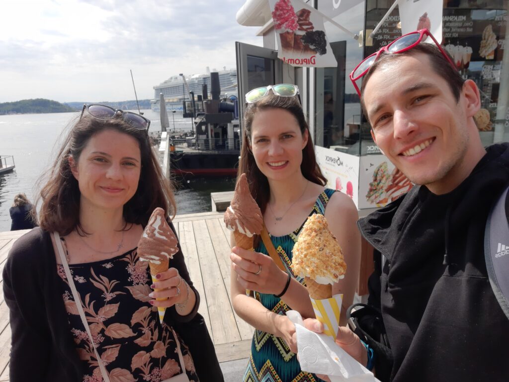 Vzhledem k tomu, jak moc jsme ošlehaní větrem, nezbyla jiná možnost, než si dokázat, že v nás něco ze severu zůstává (ostatně ve Skandinávii jsme byli na Erasmu všichni tři a přežili to), takže jsme si dali zmrzlinu.