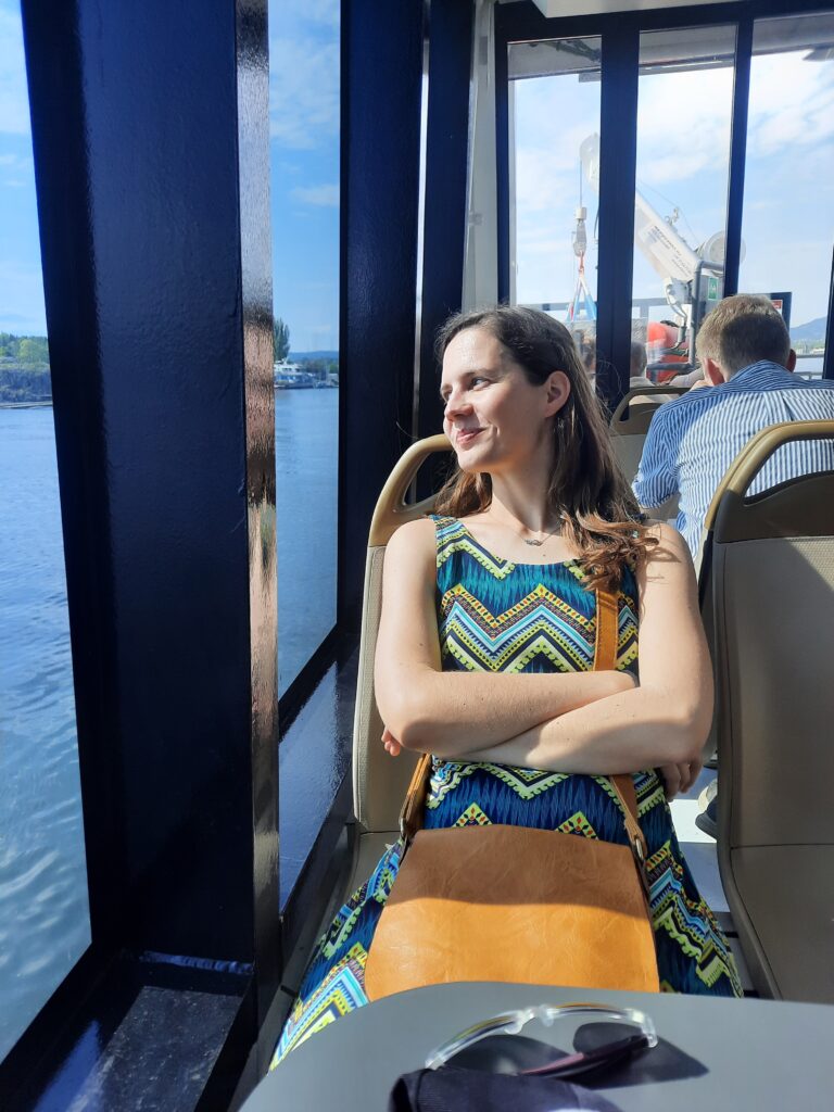 Na první zastávce nevystupujeme, ale na té další už ano. Co mě překvapilo, bylo, že trajekt klidně z jedné zastávky na druhou nacouval. Výstupní plošinu ovládala posádka dálkovým ovladačem. Mají to tu vymakané.