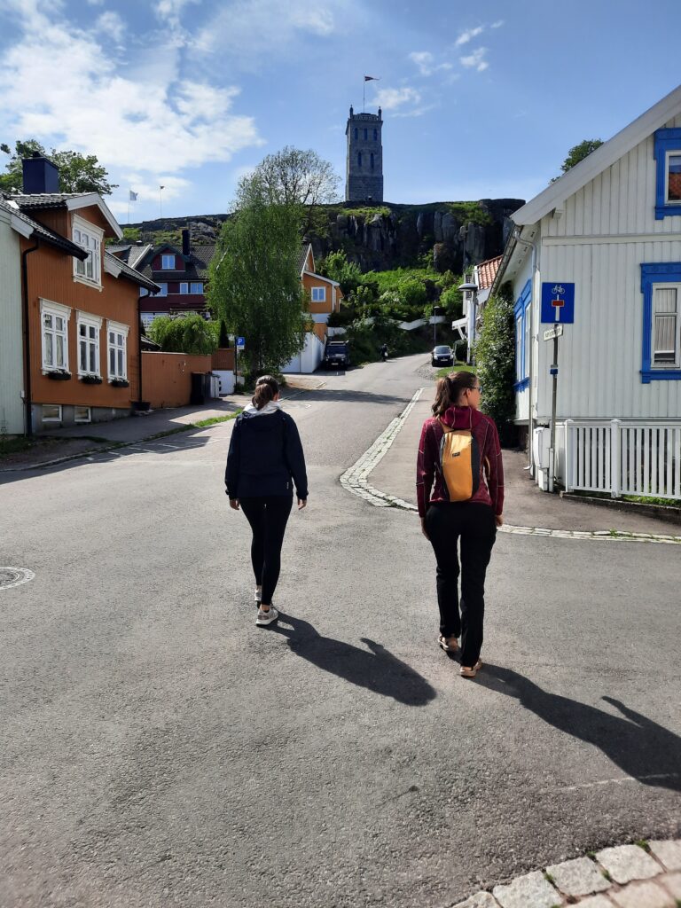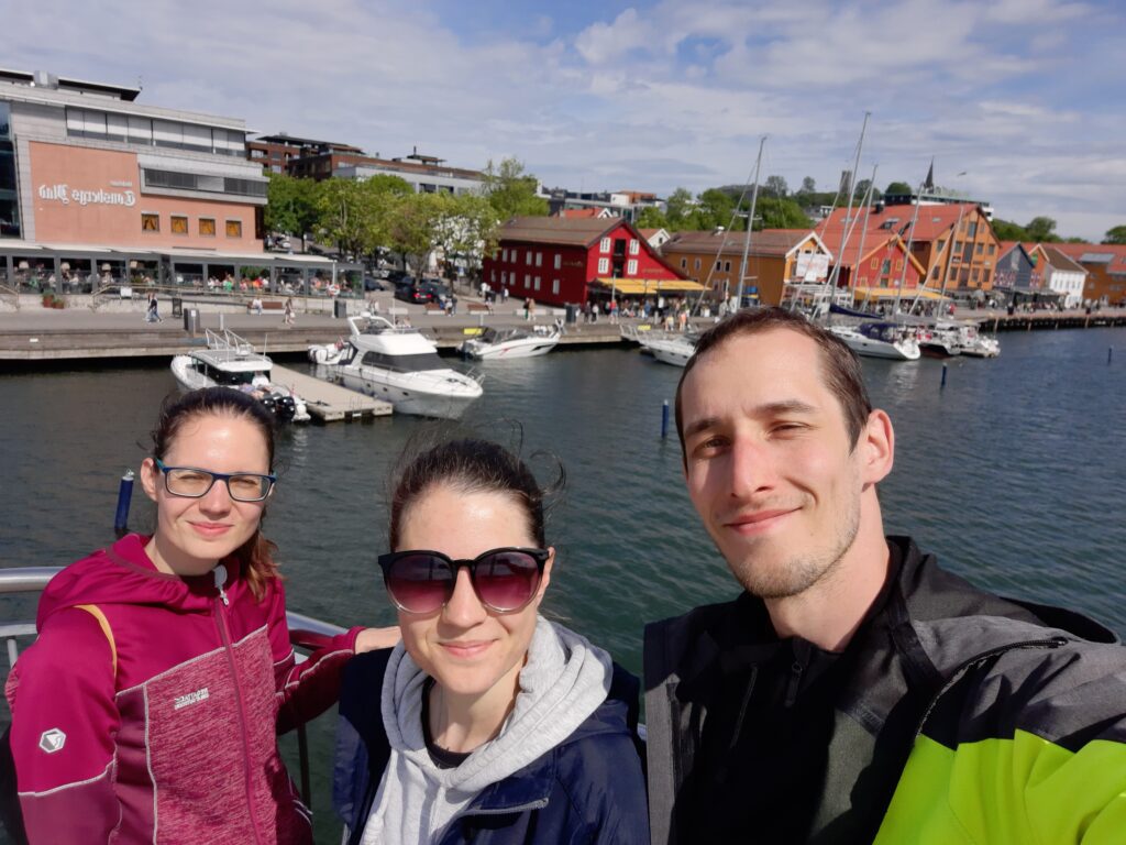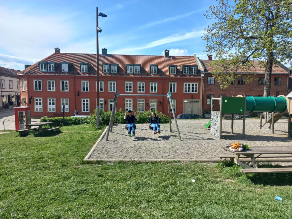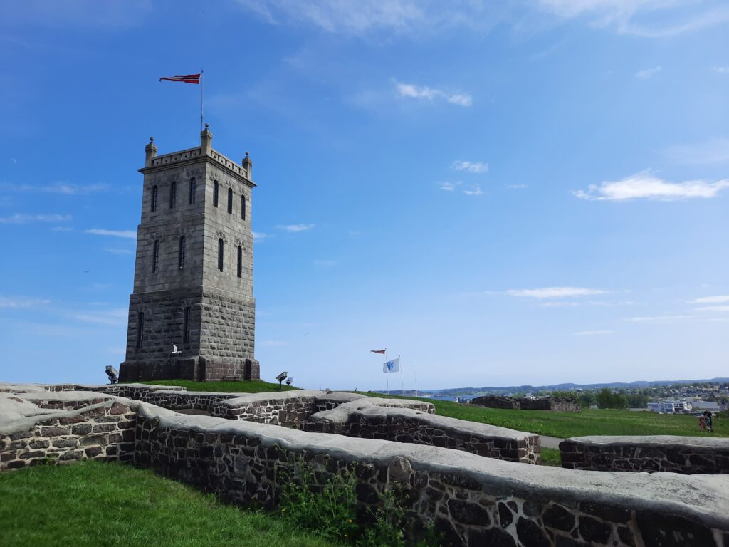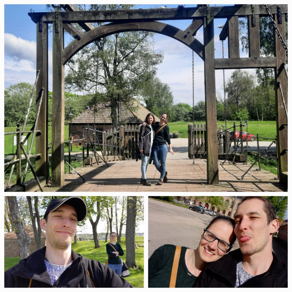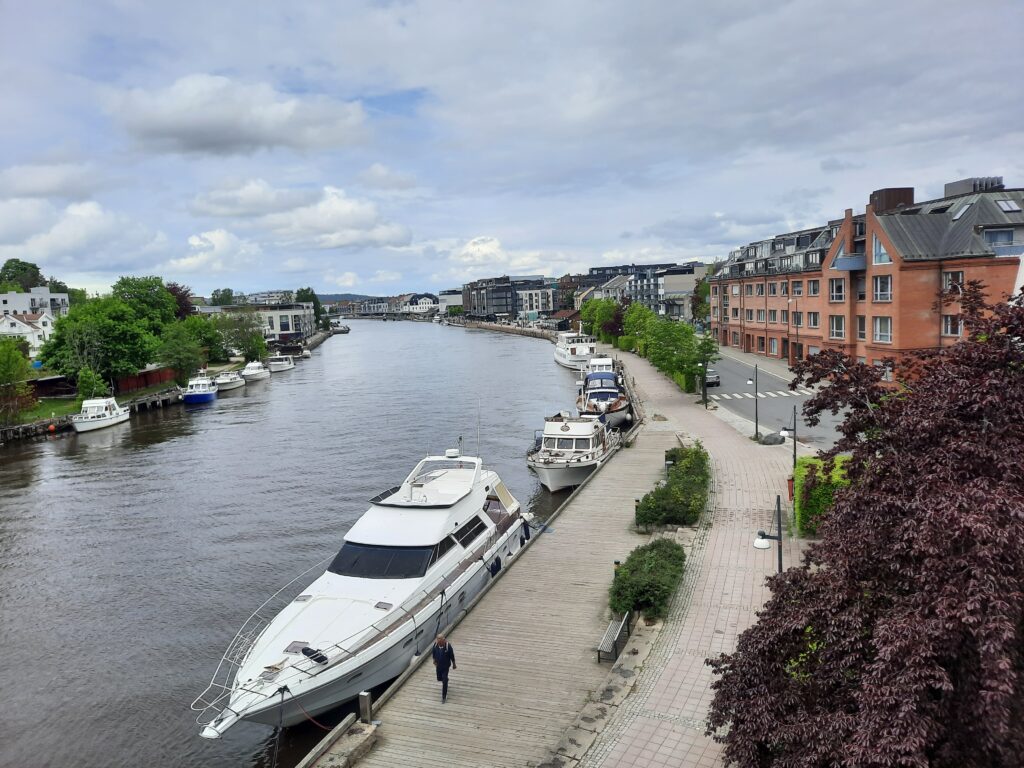 Město je rozdělené řekou Glomma, která je nejdelší v Norsku, na tři části. Chceme postupně navštívit všechny tři, což nám dovolí místní trajekt. Super je, že je provozovaný městem a je zdarma! Postupnou procházkou jsme přešli most (po kterém tekla voda?) na druhou část. Zde se asi hlavně bydlí, ale je zde také historicky významné opevnění Isegran. Místo si procházíme, je zde i toto místo pro věřící, což zjišťujeme až později.