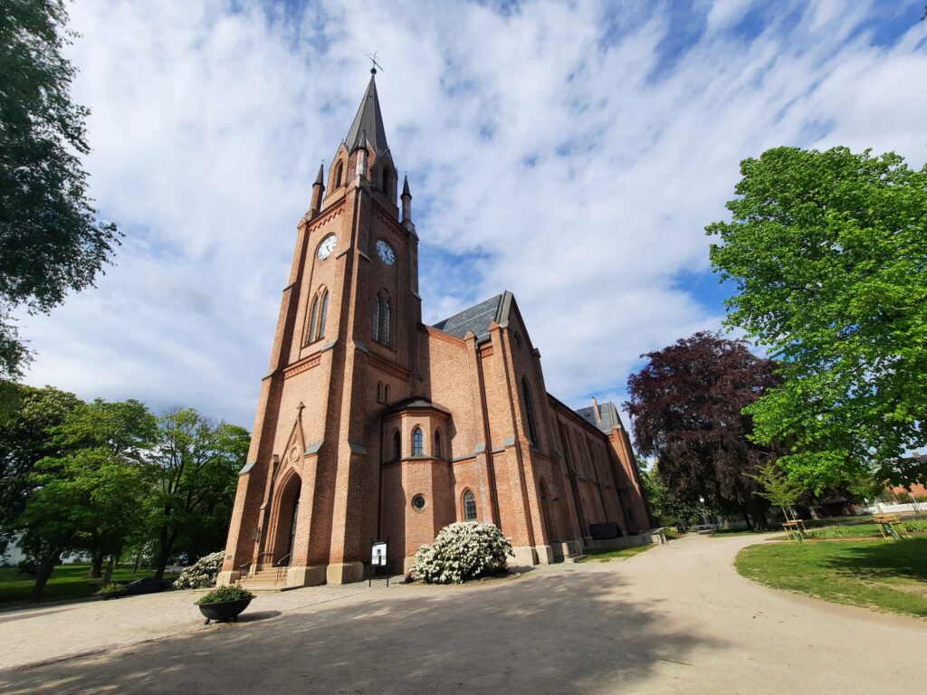 Z Vrangfoss jsme vyrazili do Skien, kde jsme potřebovali udělat nákup. Zítra je neděle, takže všude zavřeno a v pondělí je státní svátek, takže také, ale to už budeme odjíždět. Stavujeme se do mé oblíbené Rema 1000, kde nakupujeme, doufám, že vše. A taky vracíme lahve od vody. Ze Skien (kde mají hezky kostel, jak jsem našel na internetu, a který jsme ani neviděli) vyrážíme do Tønsberg. Jedeme přes město Sem, na které se určitě dá vymyslet nějaká vtipná hláška, jako „jedeme Sem“, ale nějak se mi nedaří ji vymyslet.