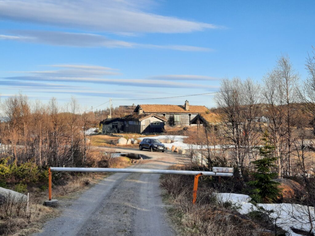 Asi za 45 minut jsme na parkovišti (po další mýtné bráně). Parkujeme asi špatně, ale nikdo tu není takže je to úplně jedno. U chaty je sice auto, ale je zavřeno. Pravděpodobně nějaký úklid nebo přípravy. Takže kafe si nedáme, ale to nevadí.