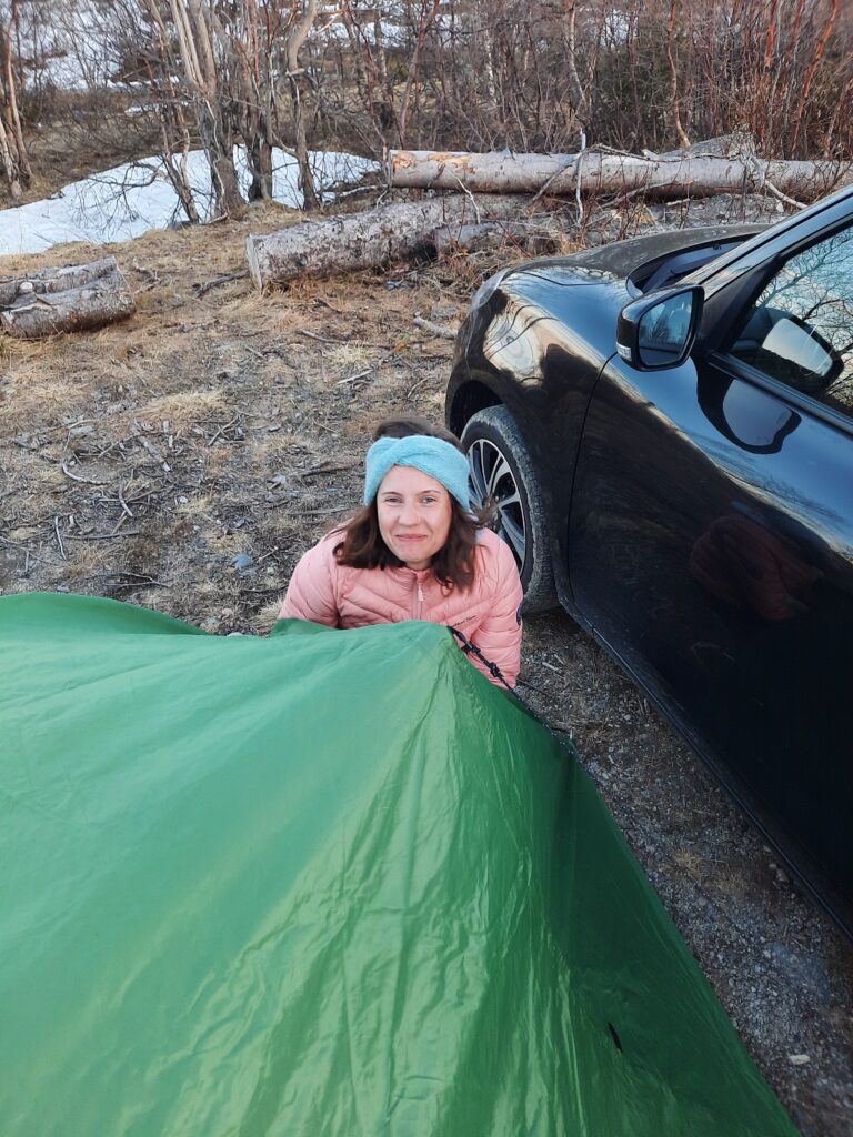 Tohle je to pořádné spaní, dneska se chrupkalo na výbornou. Bylo teplo, klid, nikde žádní sobi, losi nebo lososi. Od karavanů jsme spali taky daleko, ale tam by nás asi nikdo nerušil.