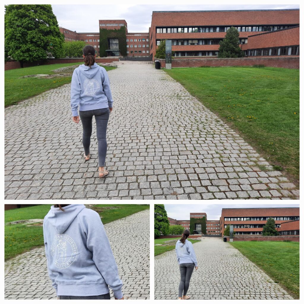 Z menzy jsme se šli projít do Akademiku (prodejna psacích potřeb a učebnic). Máďa si pořídila super památku, univerzitní mikinu a hrníček (já mám z Trondheimu dvě trička).
