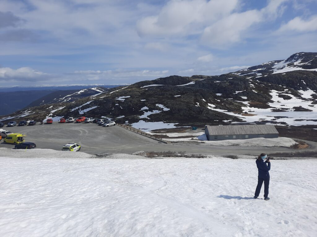 Výlet jsme ukončili o den dřív, než bylo v plánu. Jednou z věcí bylo množství sněhu v severní části našeho výletu. Jelikož jsme na Gaustatoppen nemohli, vše se o den zkrátilo a obecně jsme asi rádi, ze další noc ve stanu nebude (Madla je ráda určitě). Náš stan je pro 2,5 člověka, takže ve 3 je v něm plno, pohodlně, ale plno. A když budeme spát na kolejích, aspoň nemusíme řešit místo pro stan. To se nám tu na jihu hledalo mnohem hůře, než třeba loni na Lofotech.