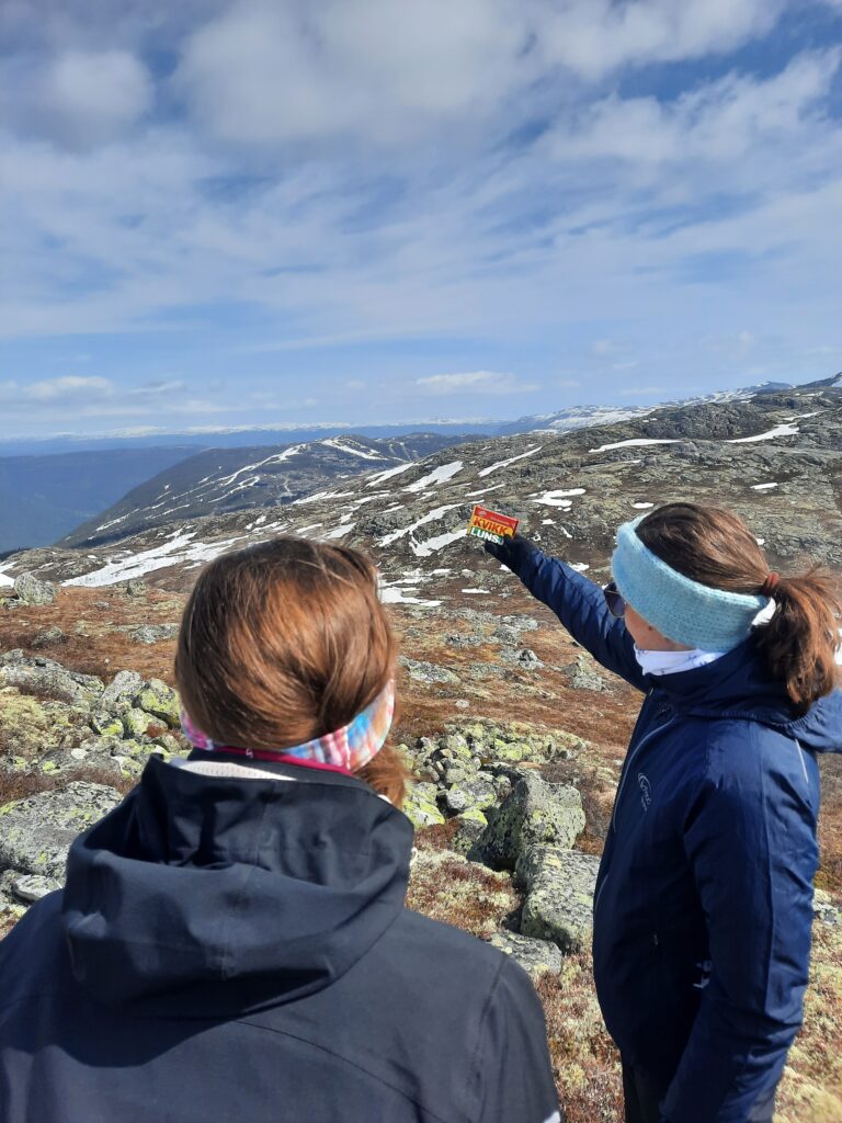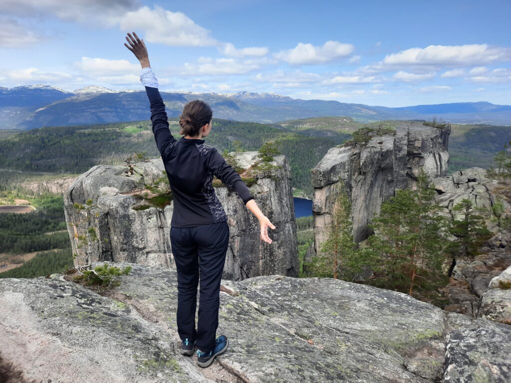 Z kavárny se nám moc nechtělo, ale museli jsme vyrazit na další cestu. Ještě jsme se v Kviteseid stavili v Kiwi, kde jsme koupili vodu (která je nechtěně perlivá, neeee!), potom grilovací párky a housky. A taky jsme vrátili prázdné lahve, které jsou tu zálohované. Vyrazili jsme směr Eikjabygda a pak parkoviště pod vrcholem Gygrestolen. Na parkovišti bychom měli zaplatit „dobrovolně povinný“ poplatek 50 NOK. Problém je, že bychom měli zaplatit přes Vipps, což je nějaká aplikace pro Nory, která vyžaduje pro provoz norské telefonní číslo. Takže smůla. Na Gygrestolen se dá vyjít okruhem, takže se rychle převlékáme a vyrážíme. Cesta by podle popisu měla být na 3 hodiny.