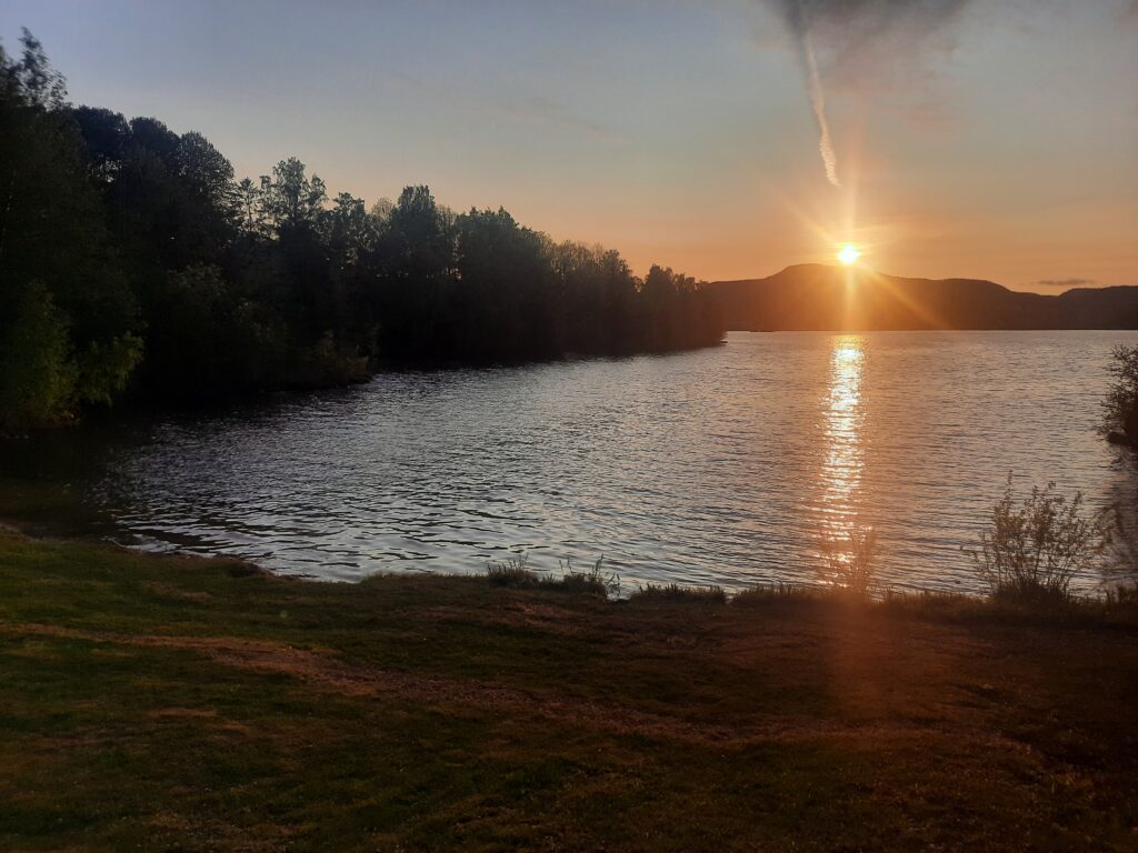 Z pláže jedeme na druhou pláž, kde by stanování mohlo klapnout. Je tady nádherně posekaná tráva, nekolik rovinek pro stan, ale bohužel tu je i cedule se zákazem stanování. Navrhuji to neřešit a jednu noc tu zvládnout. Madla je proti a tak se chvíli hádáme. Vypadá to na další noc v autě. U Kiwi, kde jsme nakupovali by příhodné místo bylo, ale bude tam dost hluk. Postavit stan by tam asi šlo také. No nic, aspoň pořizuju fotku západu slunce nad vodou.