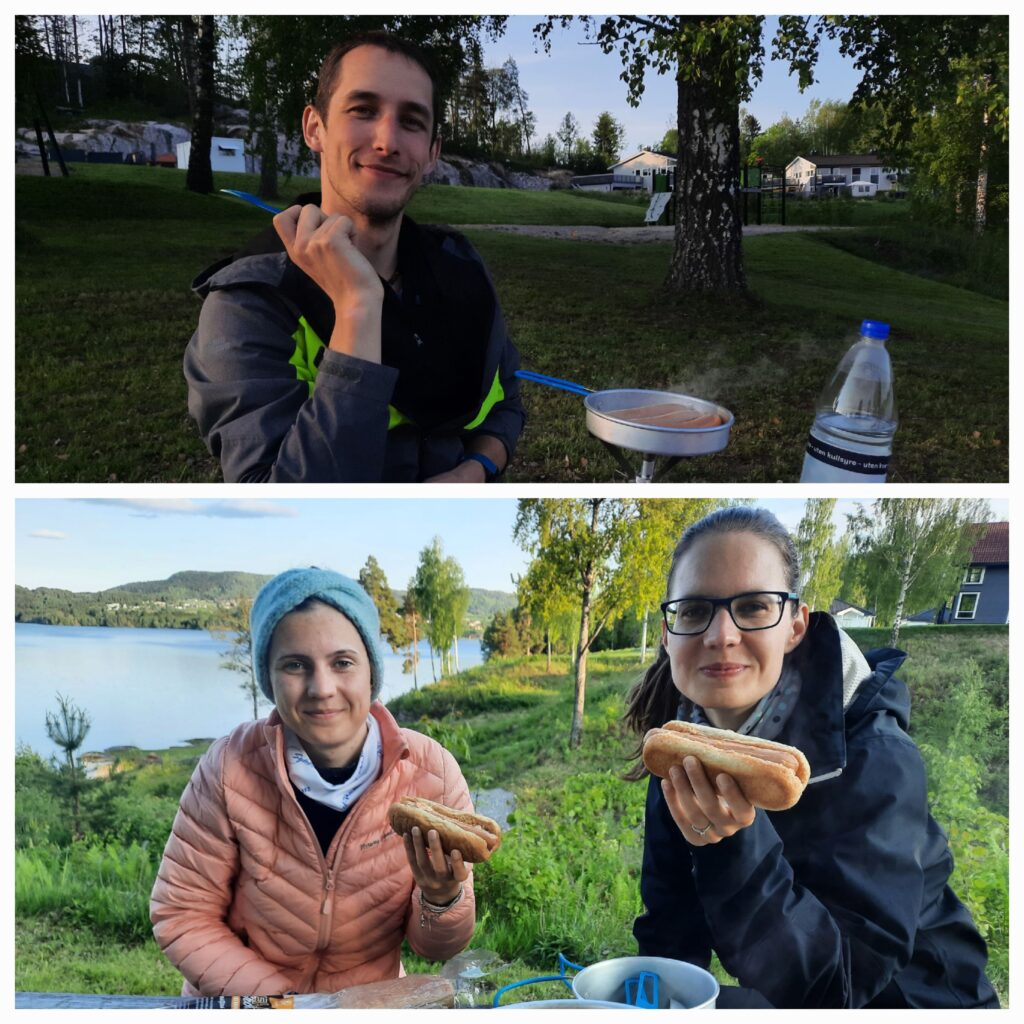 Míříme do města Ulefoss, kde víme o parkovišti, kde si plánujeme připravit večeři. Přijíždíme za 40 minut a na lavičku chystáme vše pro „grilování“. V tu stejnou chvíli zjišťuji, že kapsa, kde mám celou dobu zapalovač, je otevřená. Děsím se, snahám do ní a je prázdná. Prohrabáváme auto a není nikde. Ach jo. Balíme vše zpět do auta a jedeme do Kiwi v Ulefoss pro zapík. Zpátky už se nevracíme, místo toho jedeme směr pláž v Ulefoss, kde by možná šlo spát. Spaní nakonec neklapne, ale na lavičce děláme párky. Docela dobrota, ale už se těšíme na normální jídlo doma.