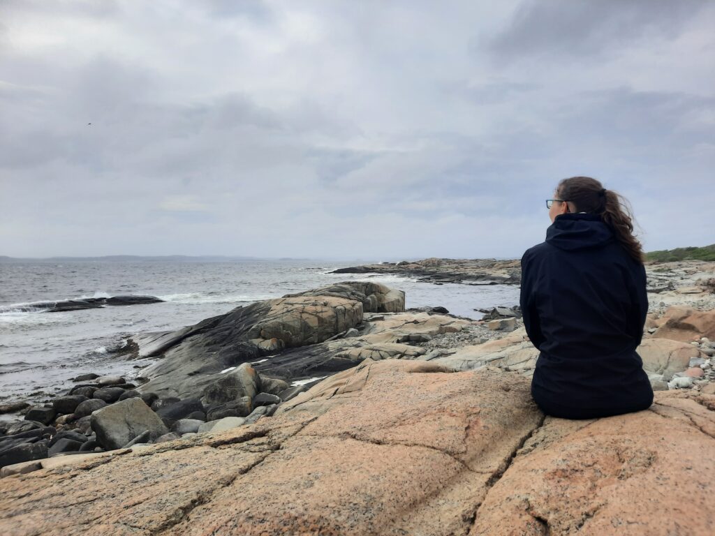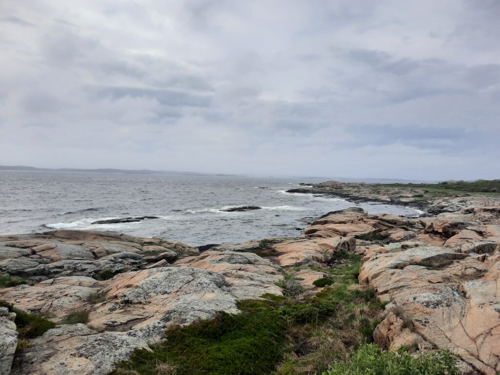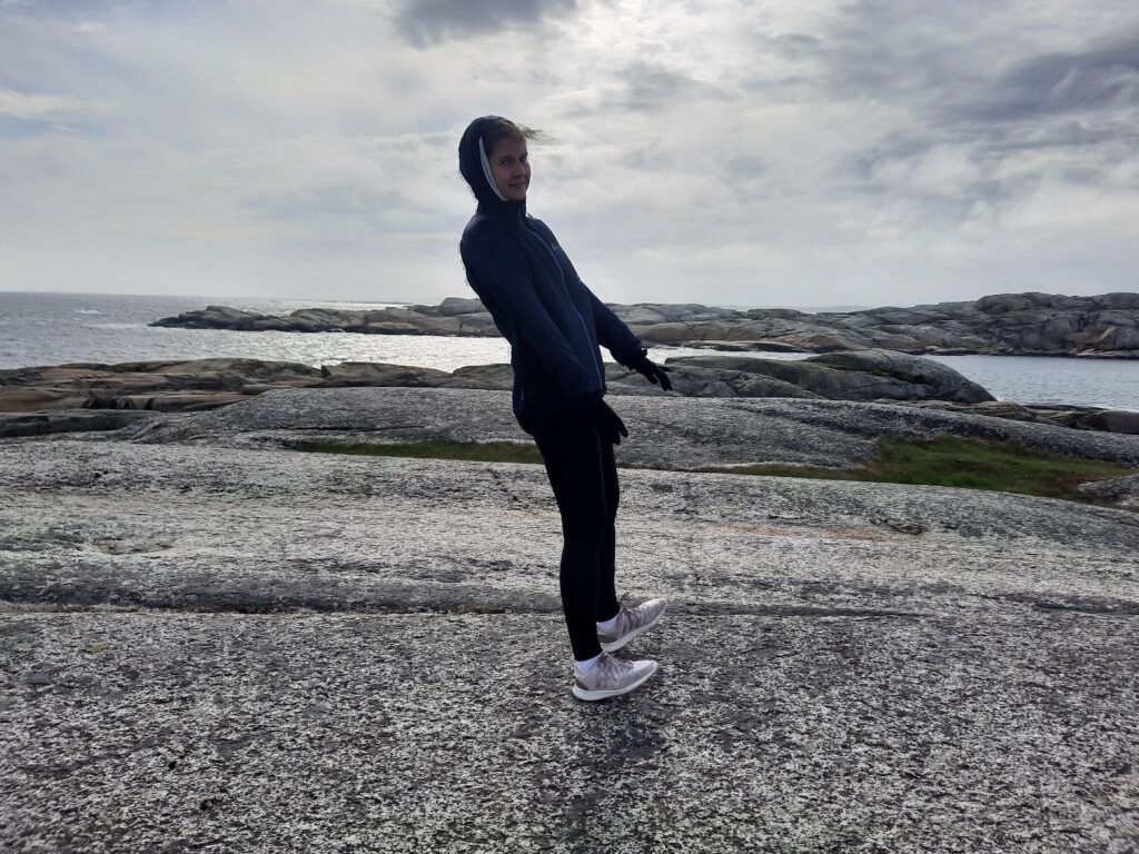 A pak je to jasné, jedeme na konec světa. Překvapivě, Madla už tam byla a nám to zabere jen 45 minut. Nečekaně na Konci světa (Verdens Ende) šíleně fouká. Fotíme se u ikonického domečku s klecí a pak se jdeme projít na kameny až na úplný konec světa.