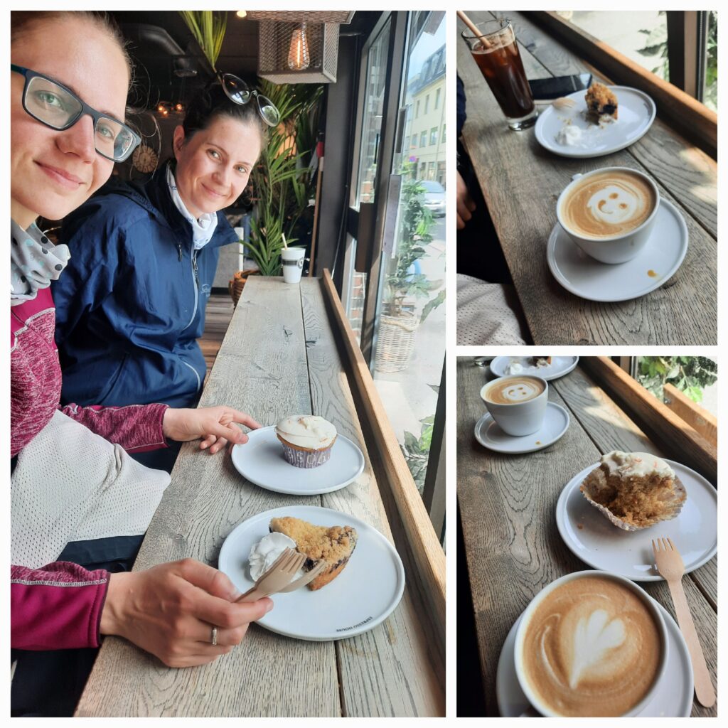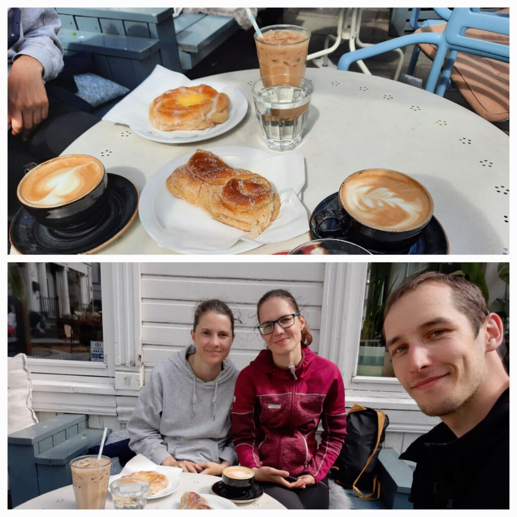 Posledním cílem v Tønsbergu byla kavárna WITH – Brød&Kaffe. Kde jsme si dali opět 2x cappuccino a Máďa ledovou kávu a dvě dobroty, o které jsme se podělili.