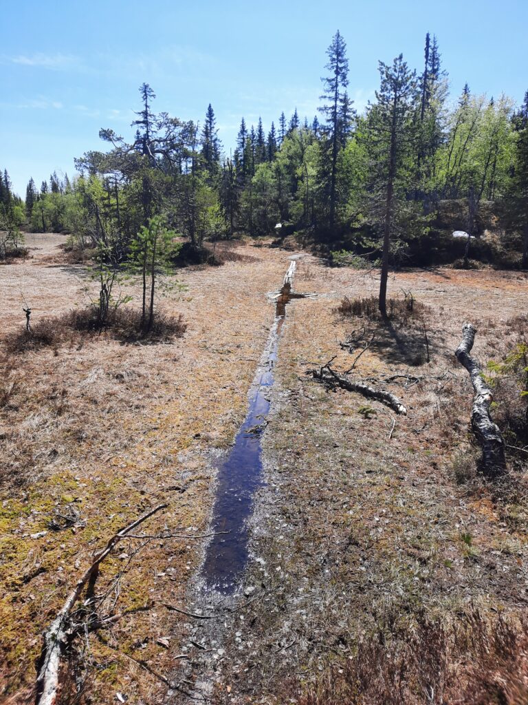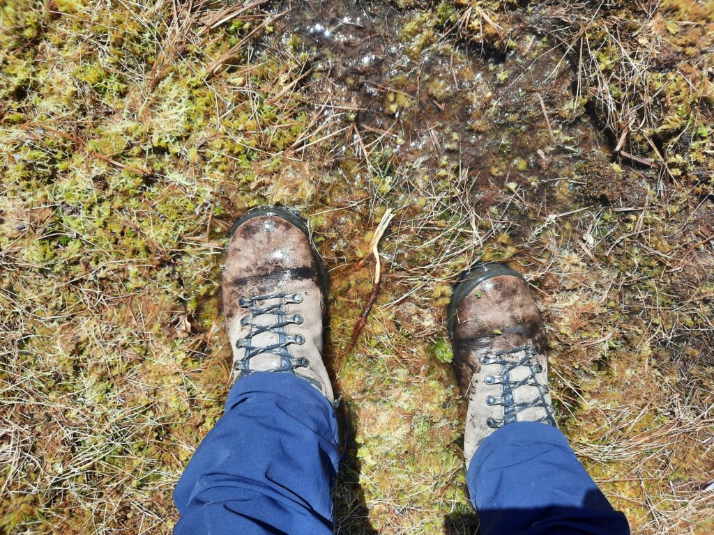 Ještě máme dost času, a tak z vrcholu jdeme k jezeru. Je dobře, že máme všichni tři pohory, protože je to tu dost podmáčené.