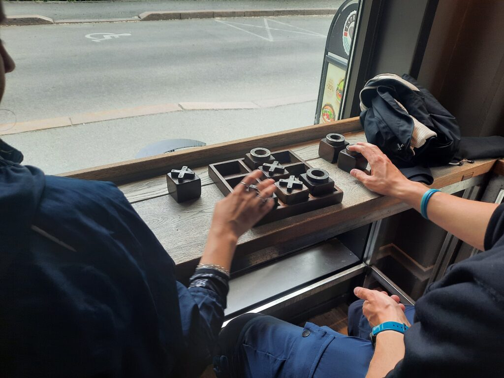Před odchodem ještě dáváme pár her piškvorek.
