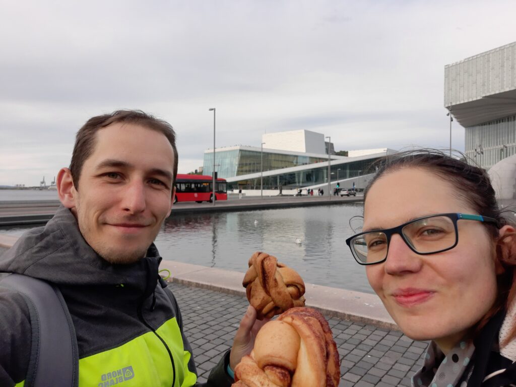 Toto místo moc doporučujeme. Hodnocení 11 kannelbolle z 10. Na gastromapě Lukáše Hejlíka by toto místo rozhodně bylo. Zároveň jsme měli i veliké štěstí, kavárna je otevřená jen v pátek a v sobotu (občas v neděli). Týna to naštěstí našla a zavedla nás tam. Nechali jsme útratu přes 200 NOK za 2 cappuccina, jednu filtrovanou kávu a k tomu skořicového šneka a mrkvový dort. Luxus.