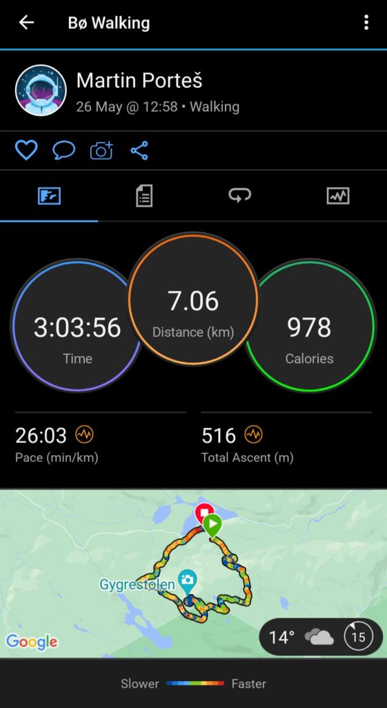 Celý okruh nám nakonec zabral přesně 3 hodiny a byl dlouhý 7 km včetně našeho chození po vrcholu.