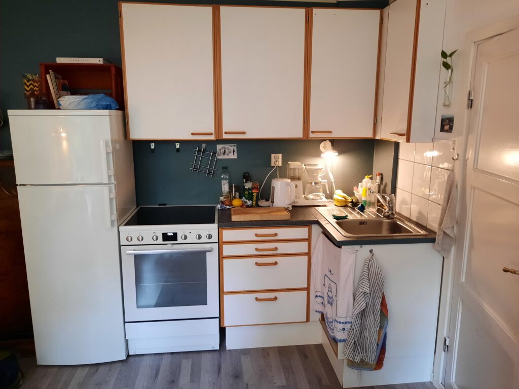 Snídani jsme zvládli v kempové kuchyňce. Ještě, že tu je, protože plynovou bombičku jsme museli nechat na Lofotech, ta do letadla nesmí a novou na 2 dny se nám kupovat nechtělo. Naštěstí jsme teda nemuseli. Na snídani nám zbývají poslední dvě kaše. Naštěstí, protože jsme se u snídaně shodli, že doma si ji teď pár dnů nedáme.